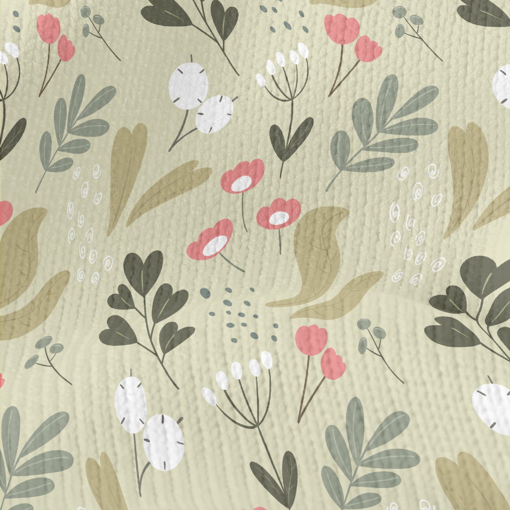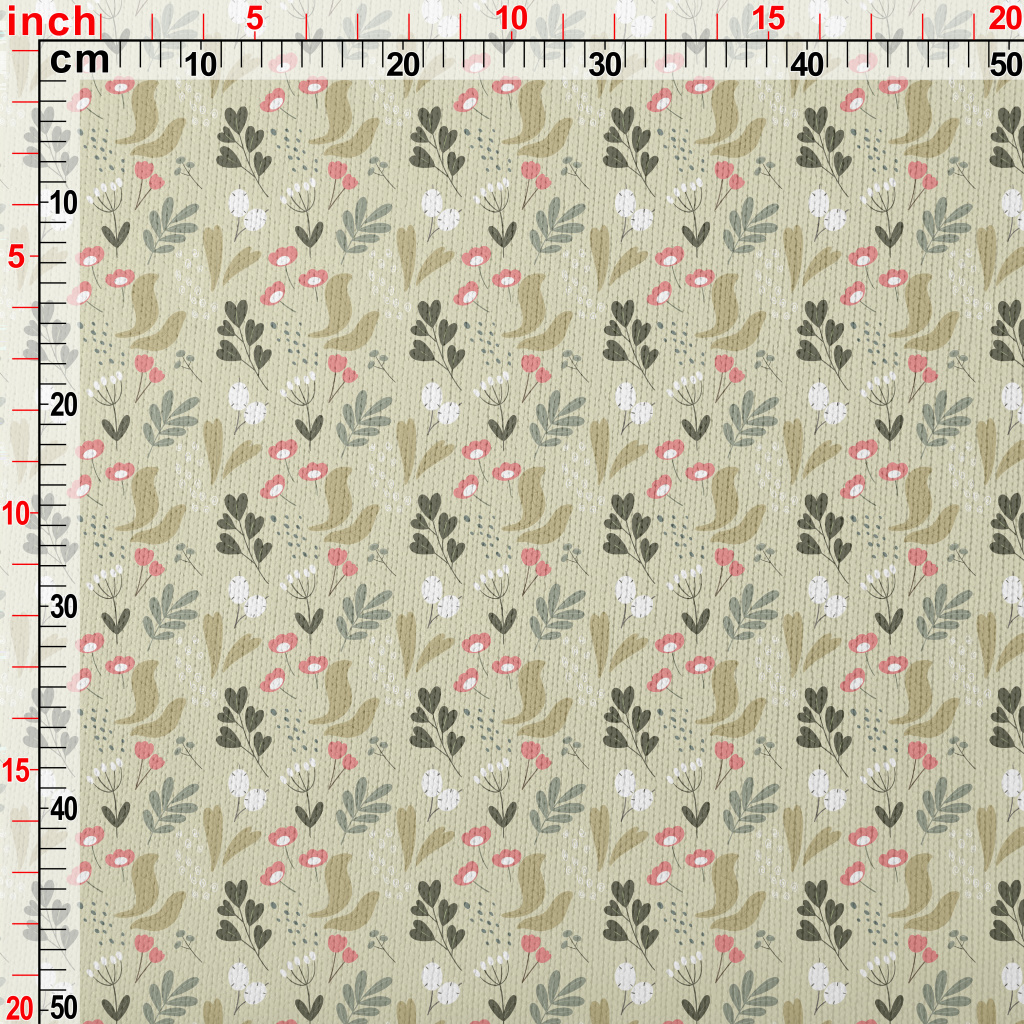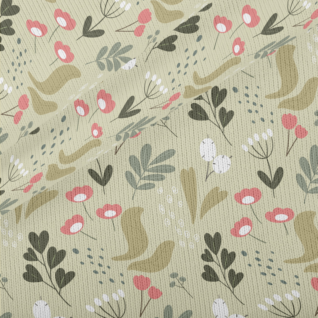 簡約色塊花朵草葉仿毛衣布(幅寬150公分)
