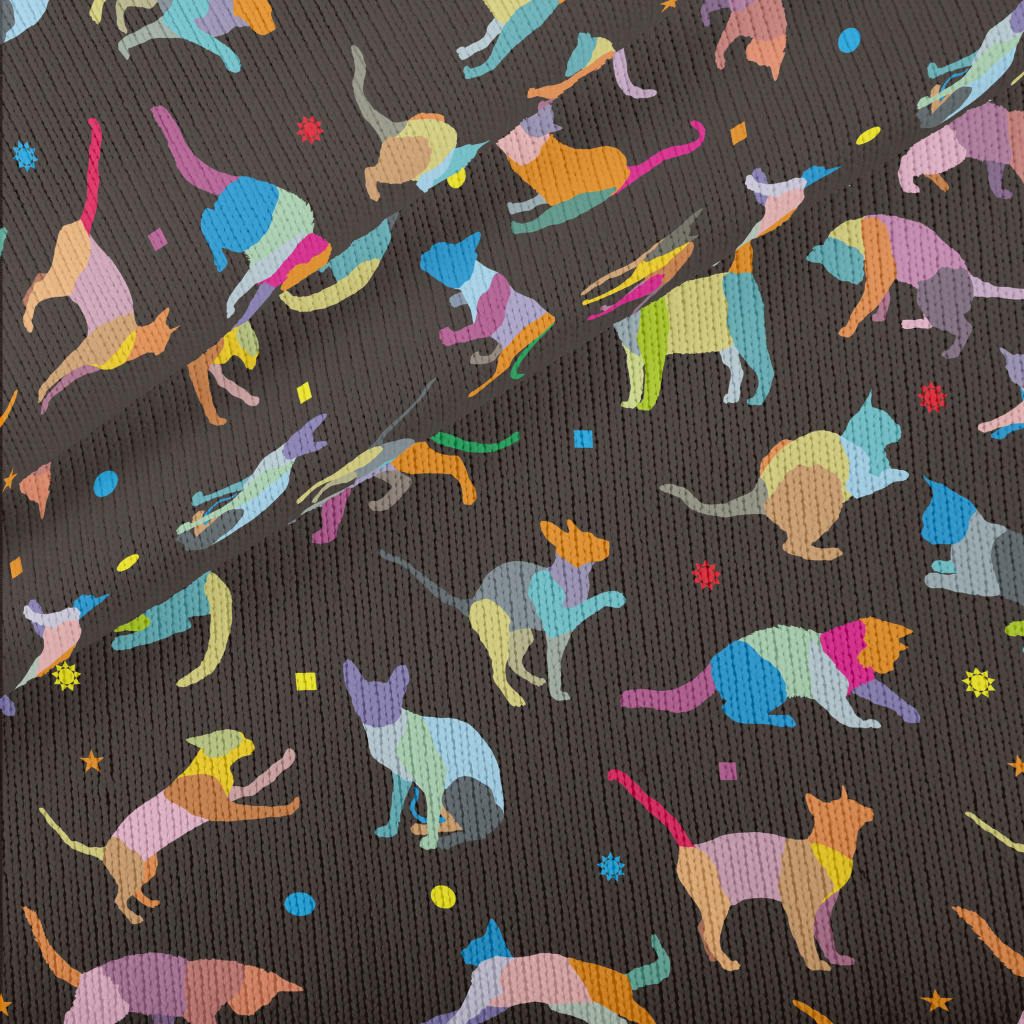 彩色色塊貓咪仿毛衣布(幅寬150公分)