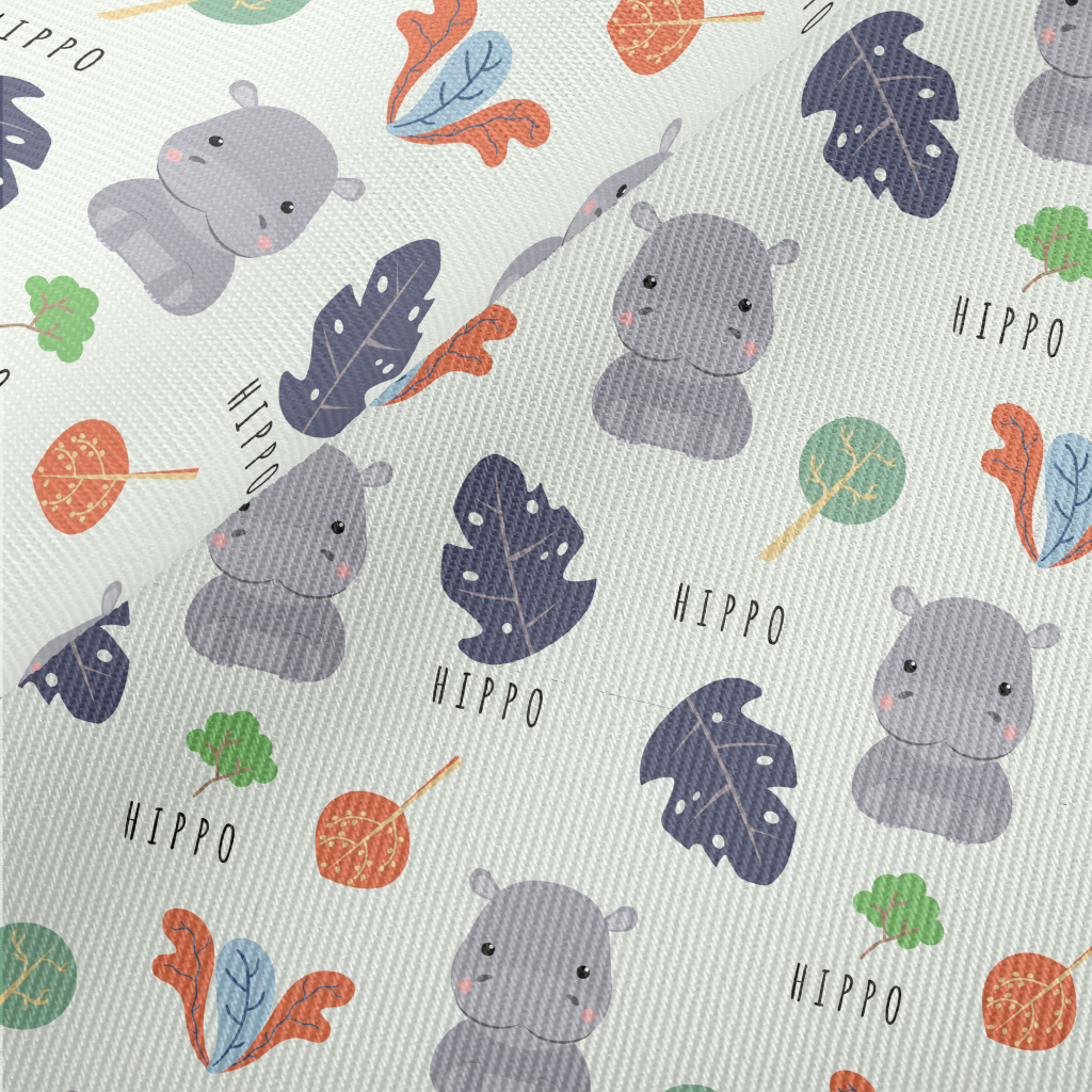 可愛河馬和葉子厚棉布(幅寬150公分)