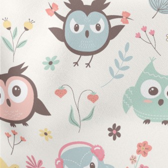 彩色圓滾呆萌貓頭鷹厚棉布(幅寬150公分)