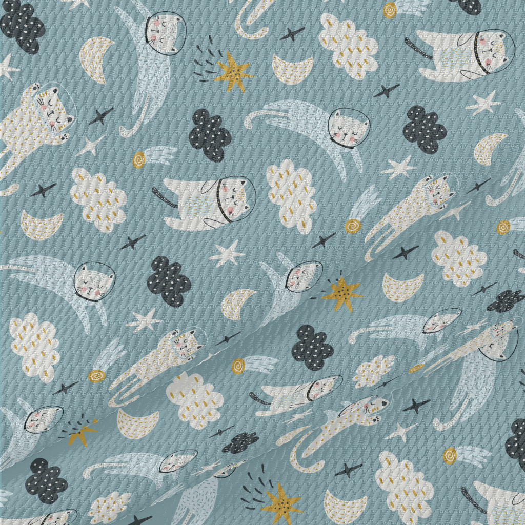 漂浮太空中的太空貓泡泡布(幅寬160公分)
