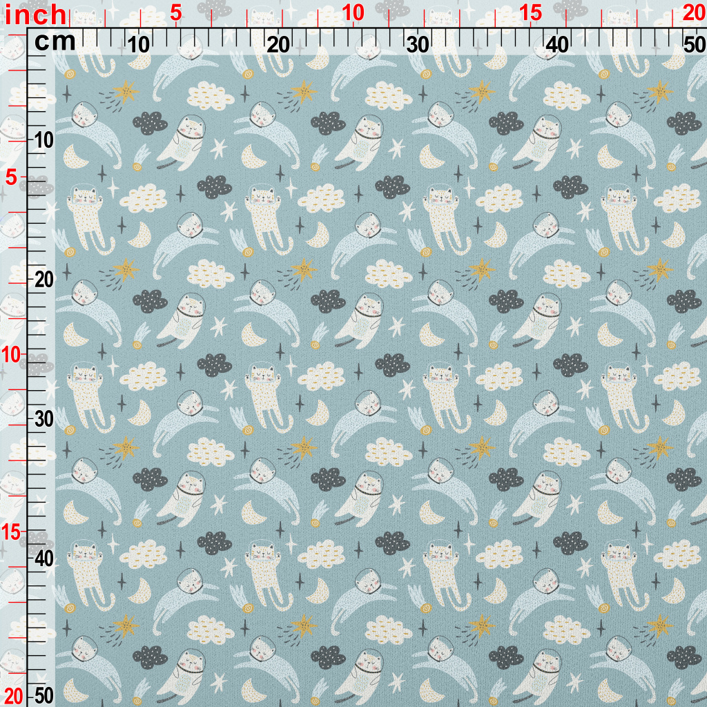 漂浮太空中的太空貓雪紡布(幅寬150公分)