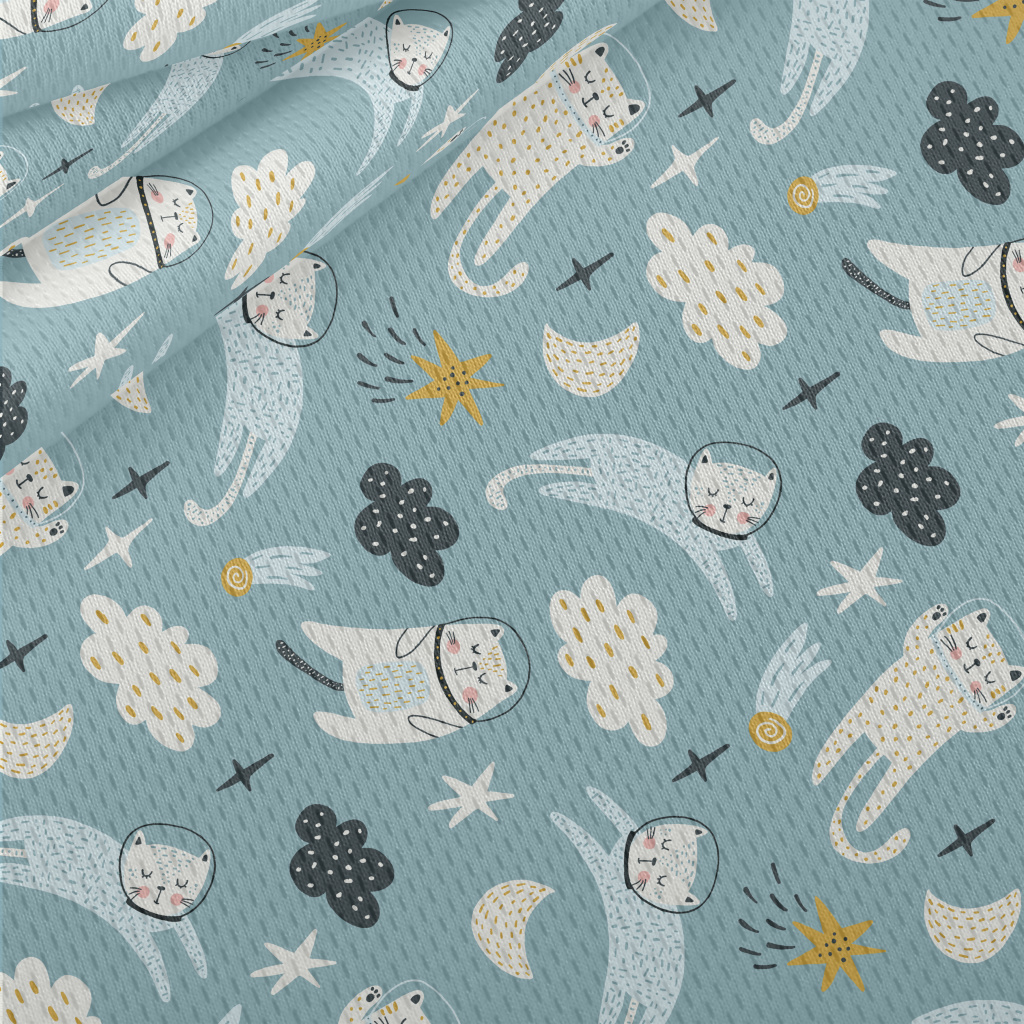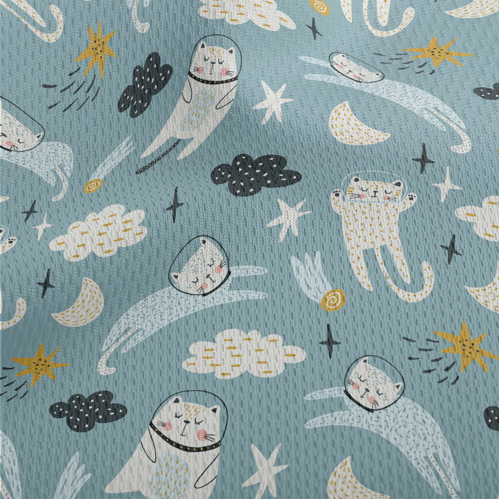 漂浮太空中的太空貓鳥眼布(幅寬160公分)