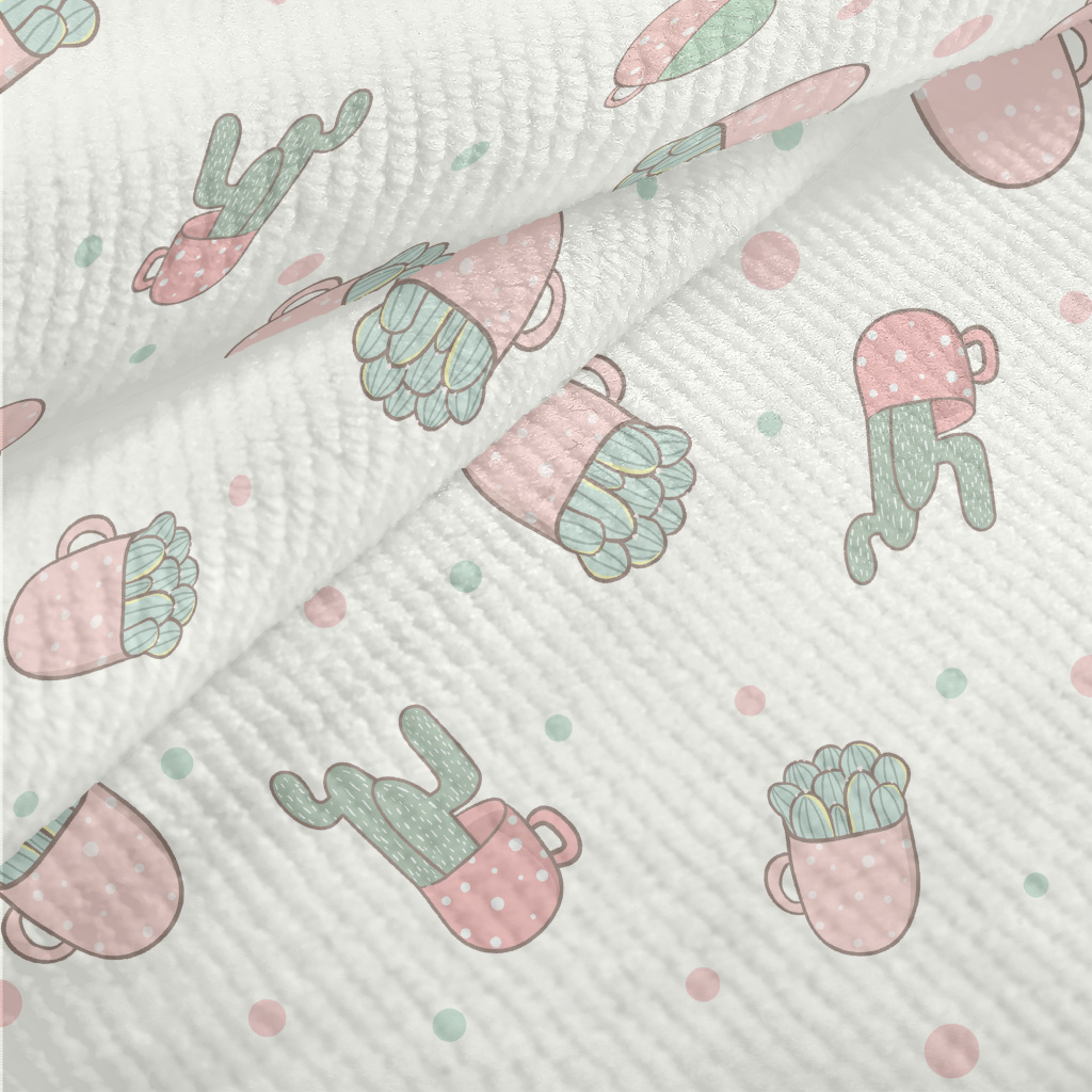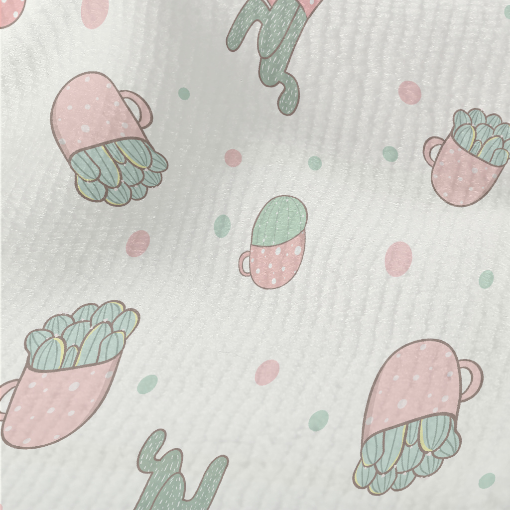 溫和色彩仙人掌盆栽毛巾布(幅寬160公分)