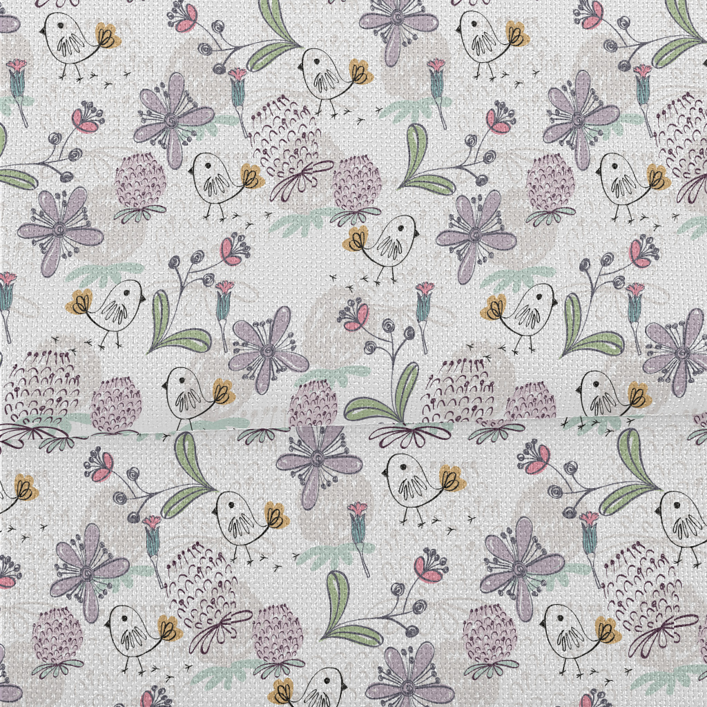 手繪筆刷小鳥花卉麻布(幅寬150公分)