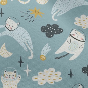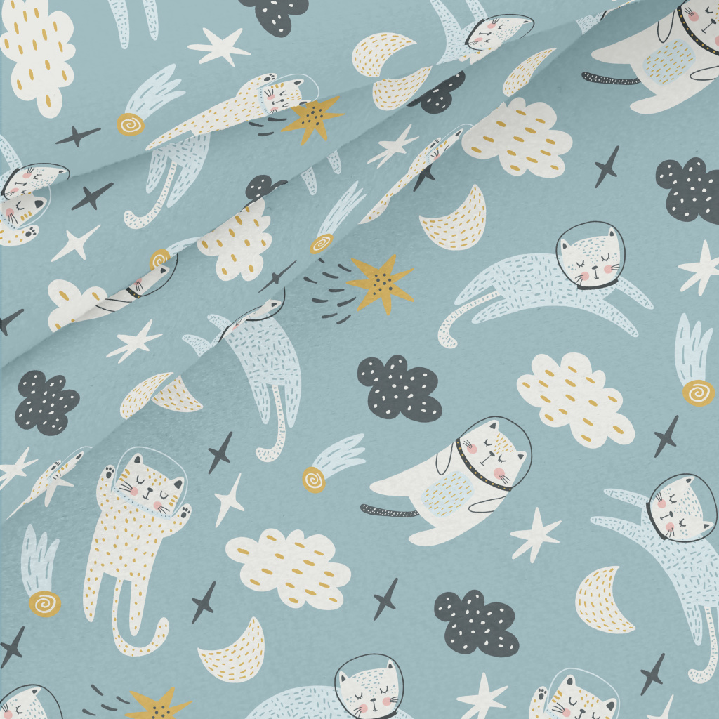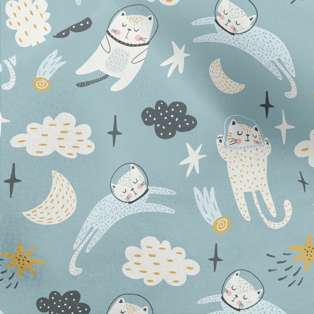 漂浮太空中的太空貓水晶絨(幅寬160公分)