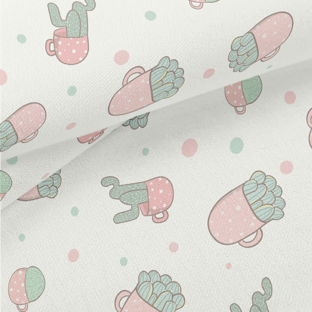 溫和色彩仙人掌盆栽竹節麻(幅寬150公分)