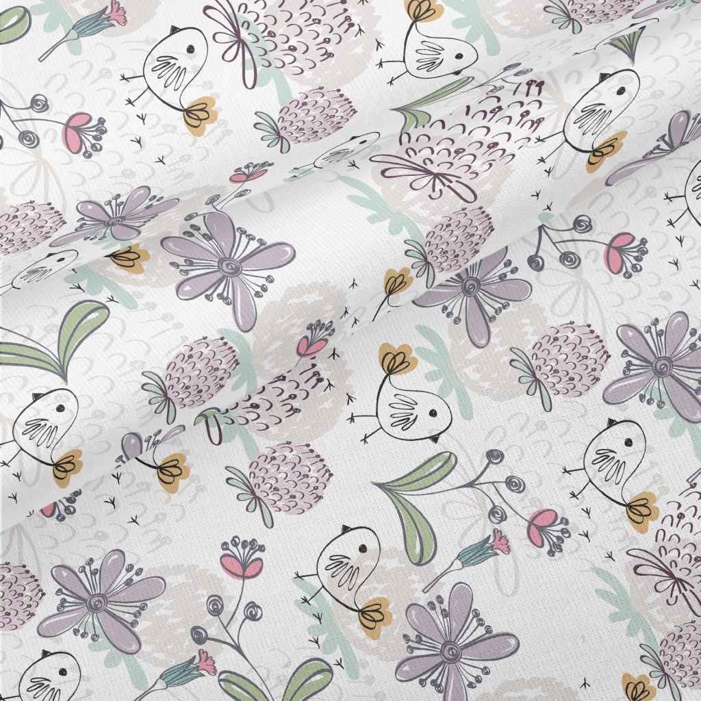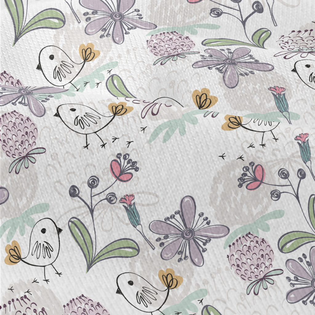 手繪筆刷小鳥花卉仿棉布(幅寬150公分)
