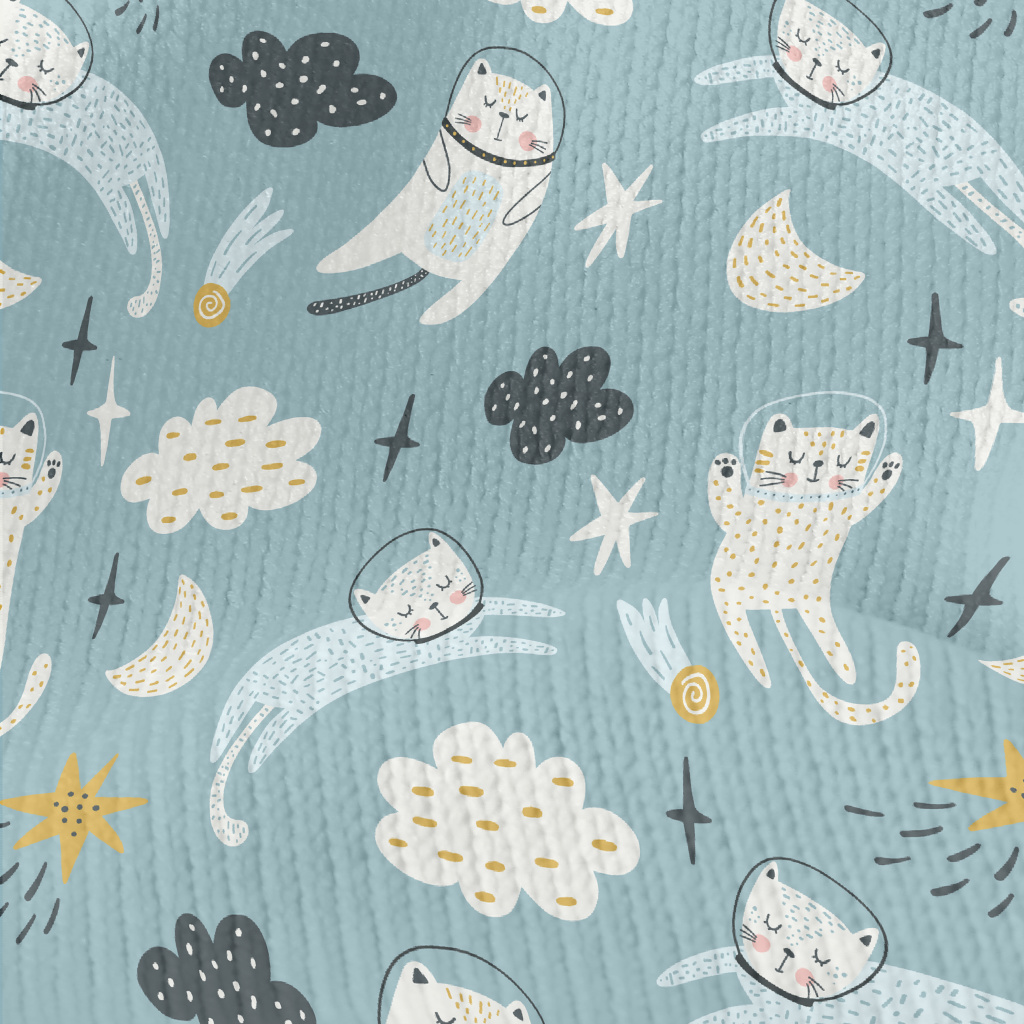 漂浮太空中的太空貓仿毛衣布(幅寬150公分)