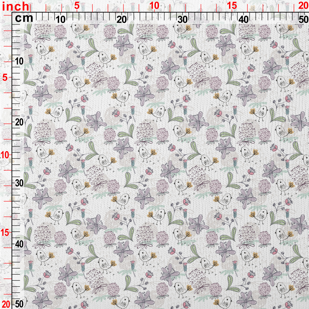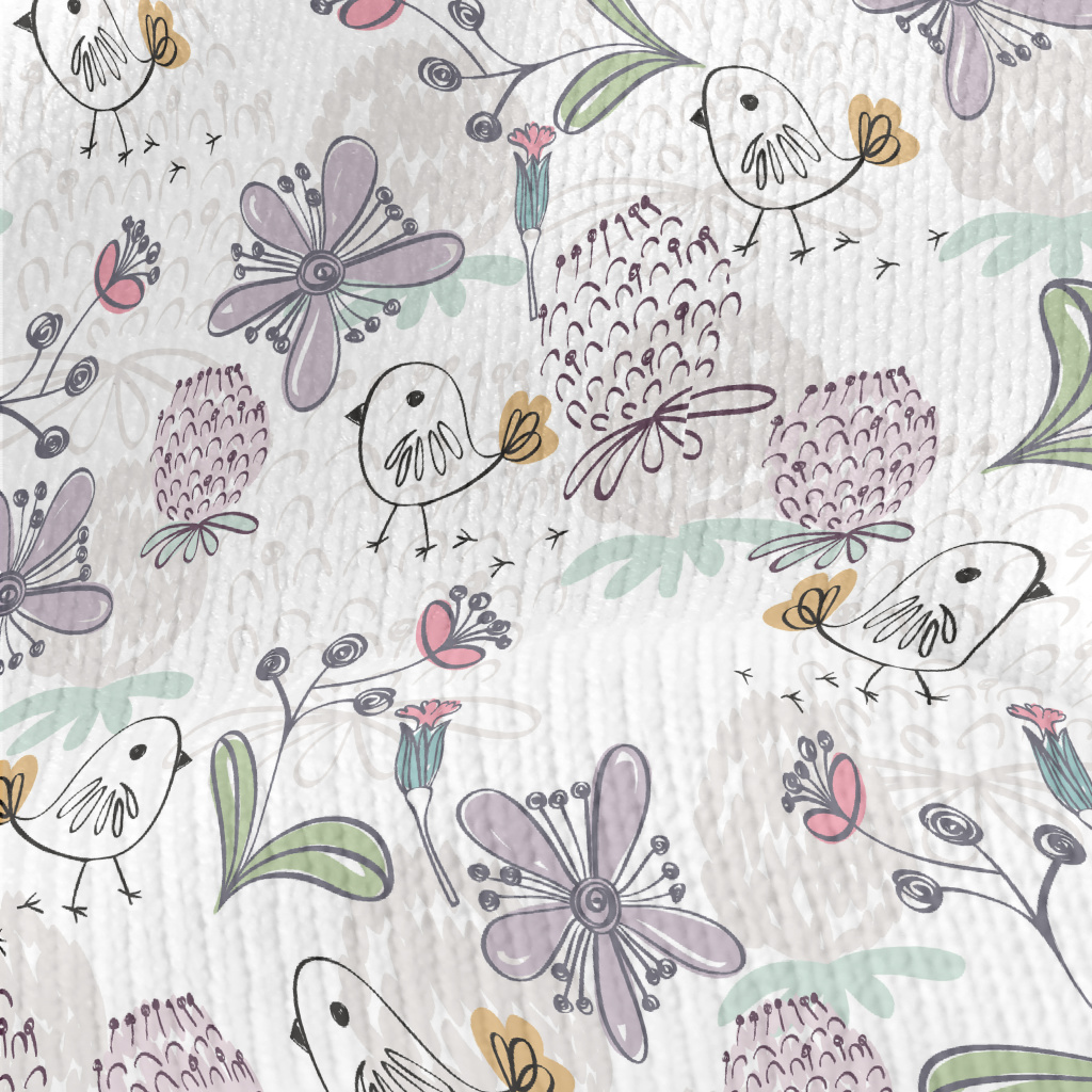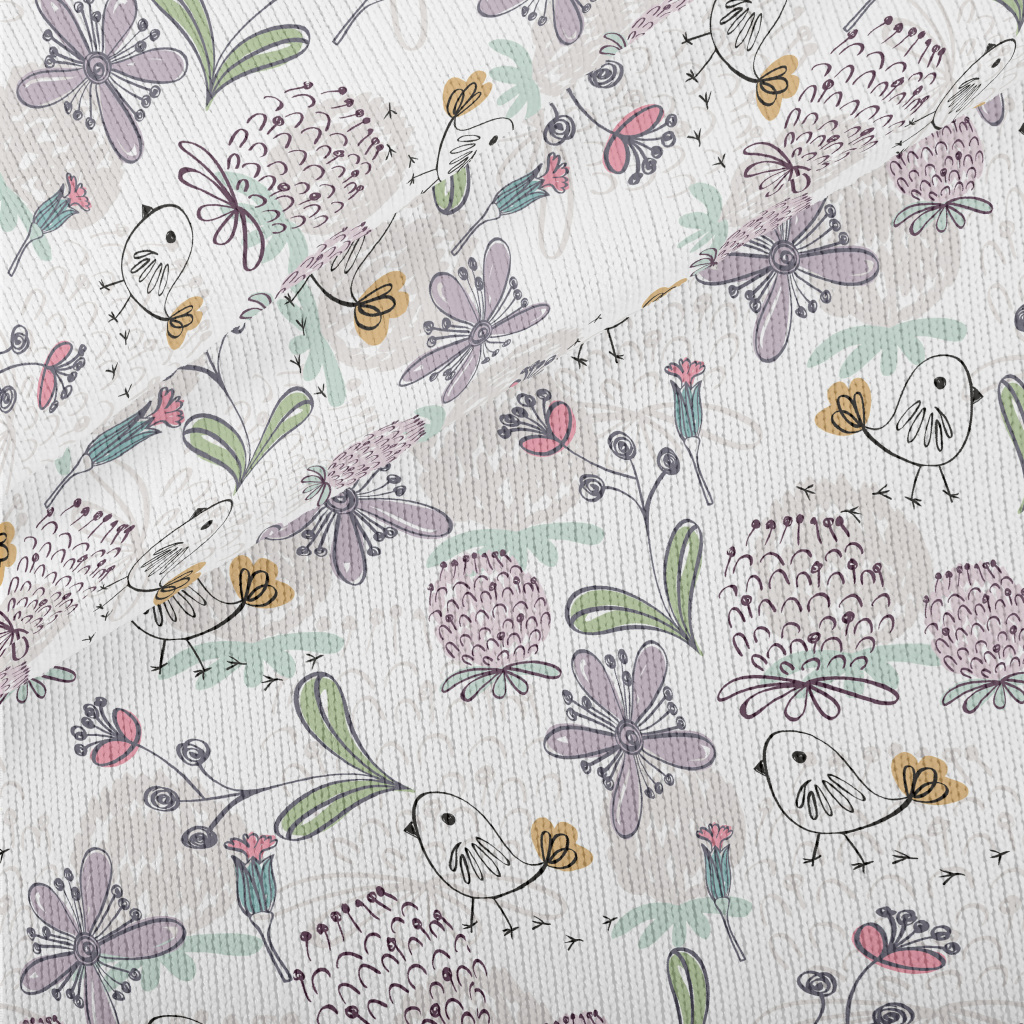 手繪筆刷小鳥花卉仿毛衣布(幅寬150公分)