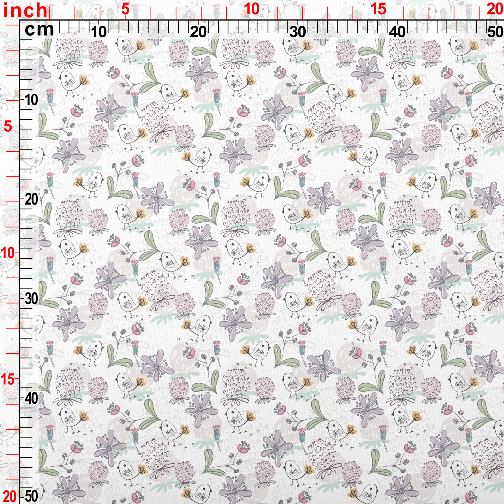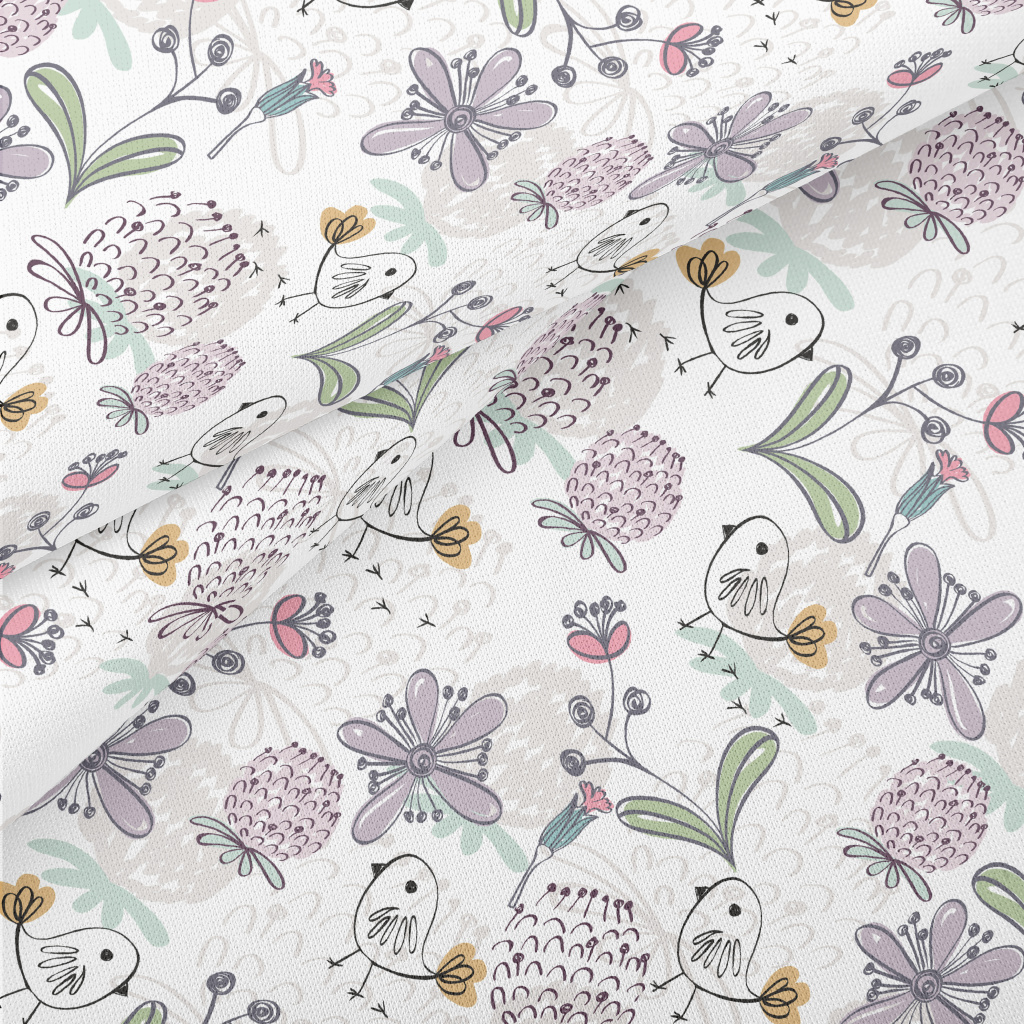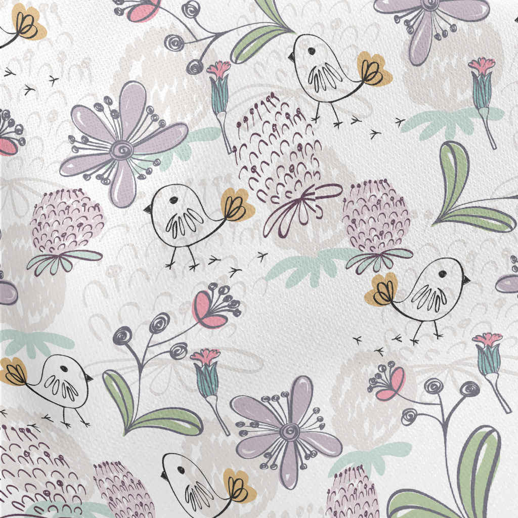 手繪筆刷小鳥花卉薄棉布(幅寬150公分)
