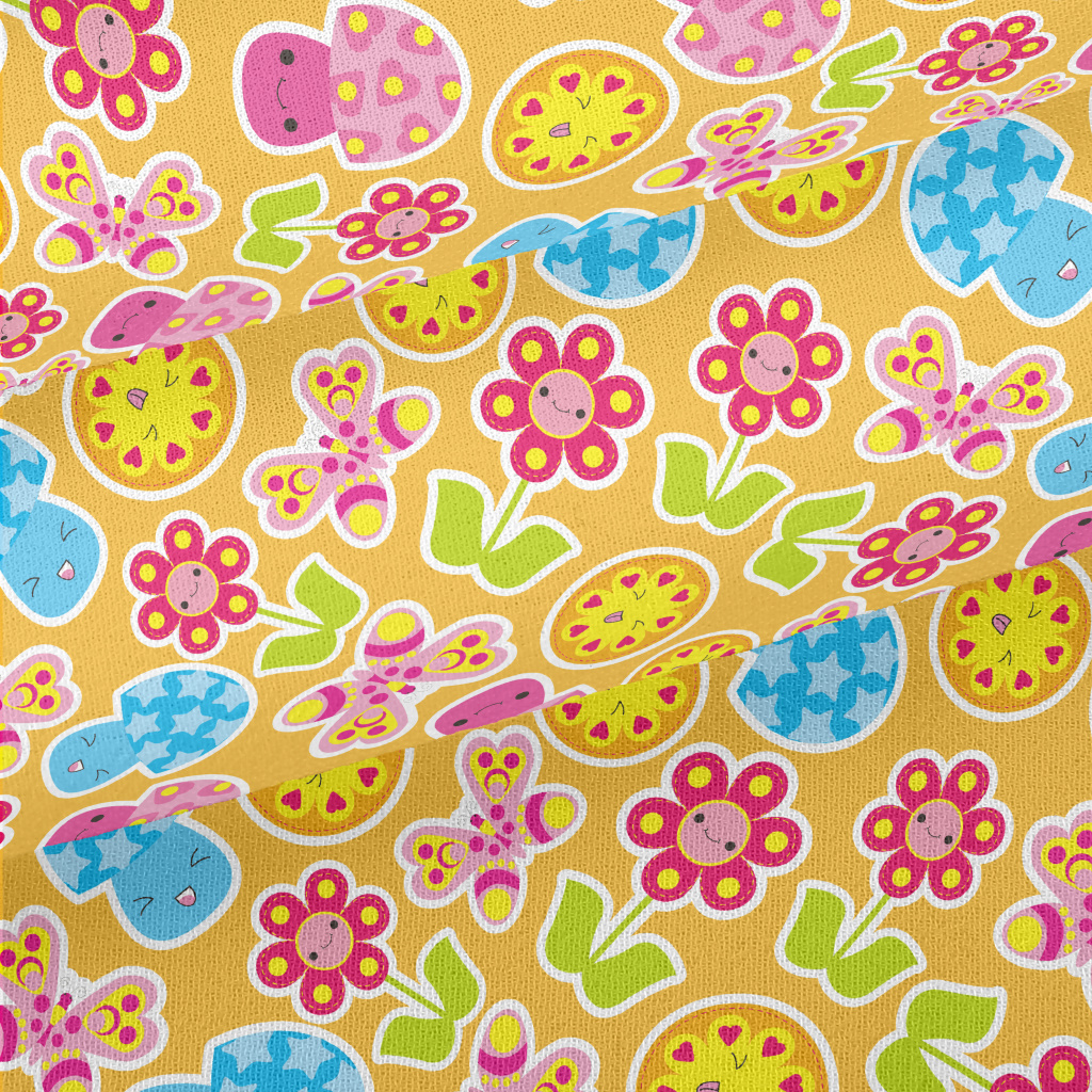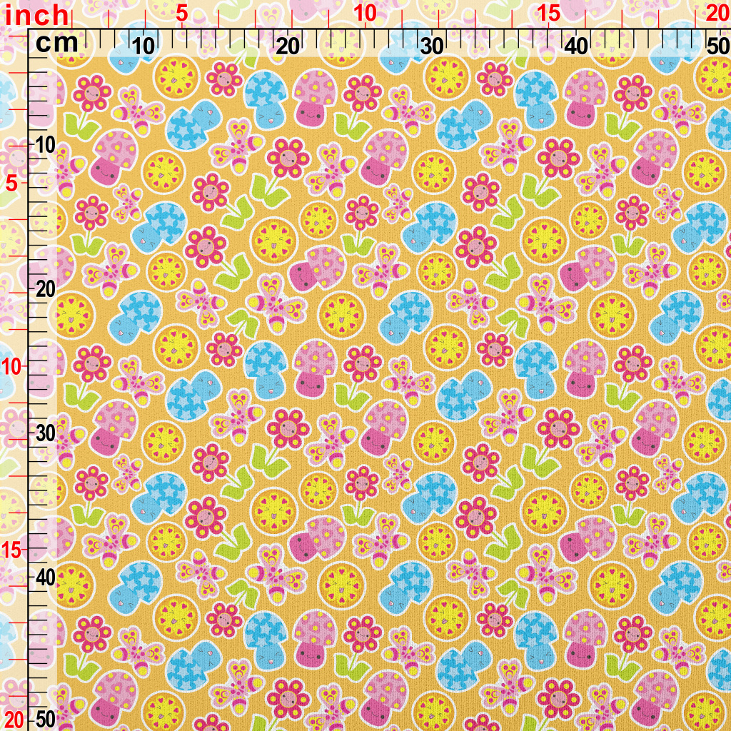 色彩繽紛花朵蘑菇蝴蝶雪紡布(幅寬150公分)