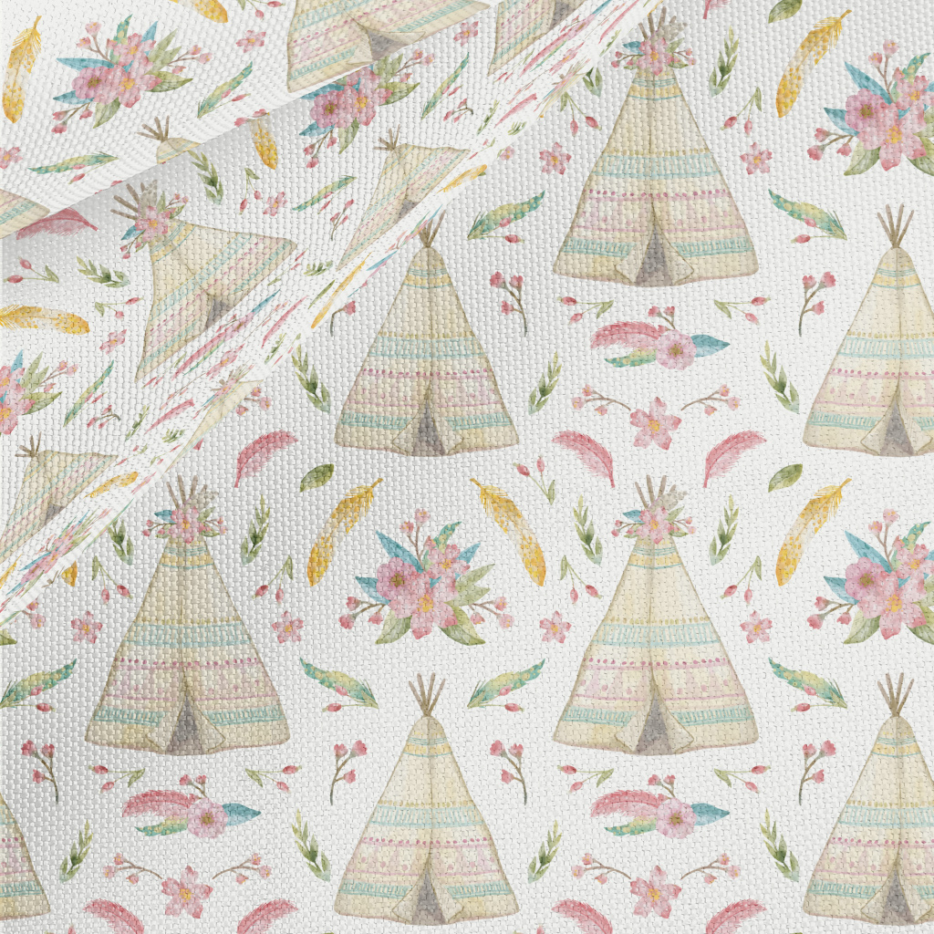 水彩畫印地安帳篷牛津布(幅寬150公分)