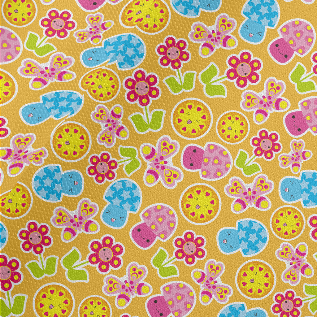 色彩繽紛花朵蘑菇蝴蝶帆布(幅寬150公分)