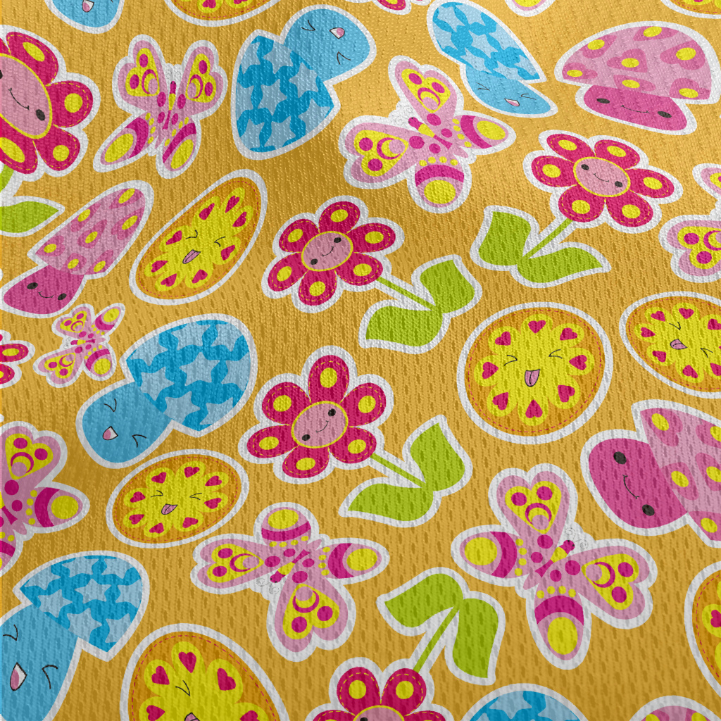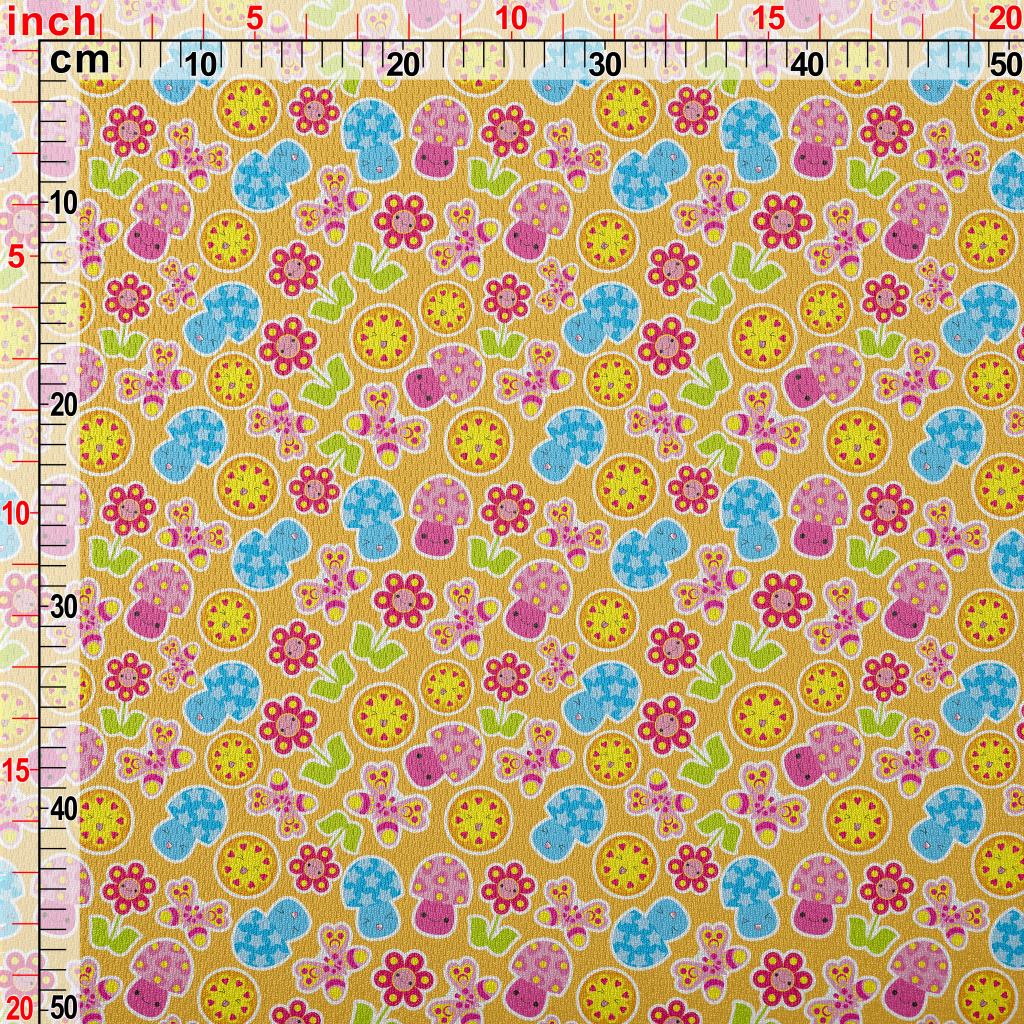 色彩繽紛花朵蘑菇蝴蝶鳥眼布(幅寬160公分)