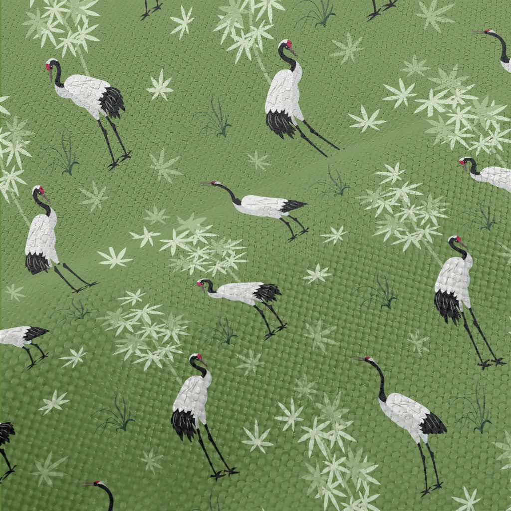 優雅亮麗丹頂鶴麻布(幅寬150公分)