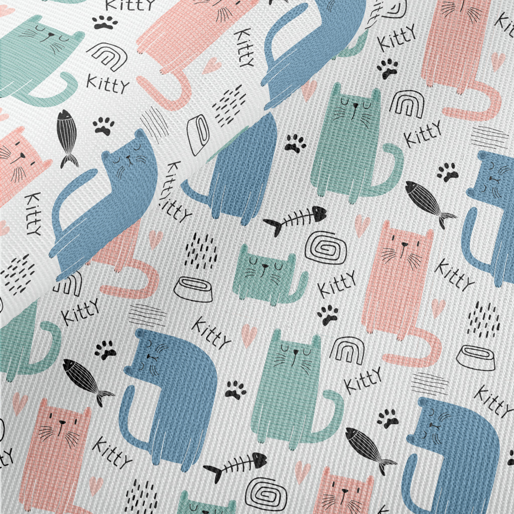 彩色呆傻貓咪斜紋布(幅寬150公分)
