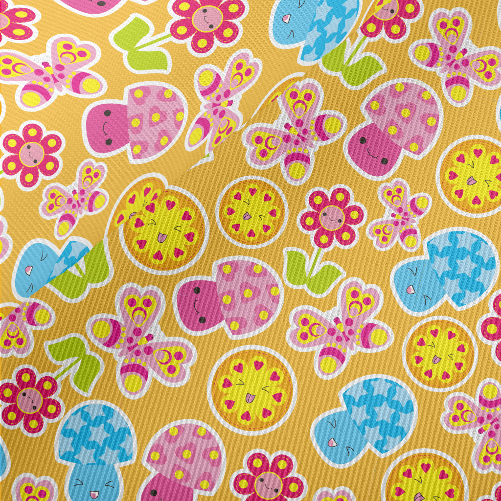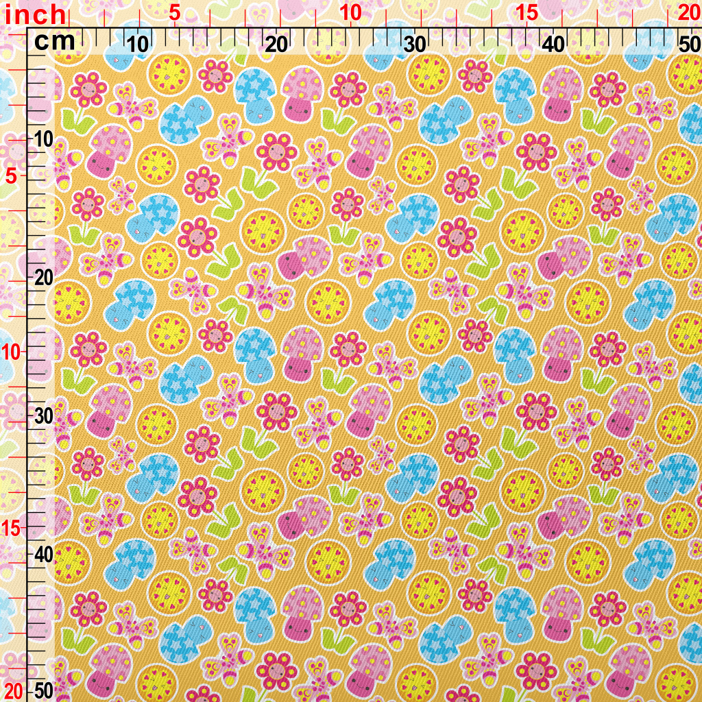 色彩繽紛花朵蘑菇蝴蝶斜紋布(幅寬150公分)