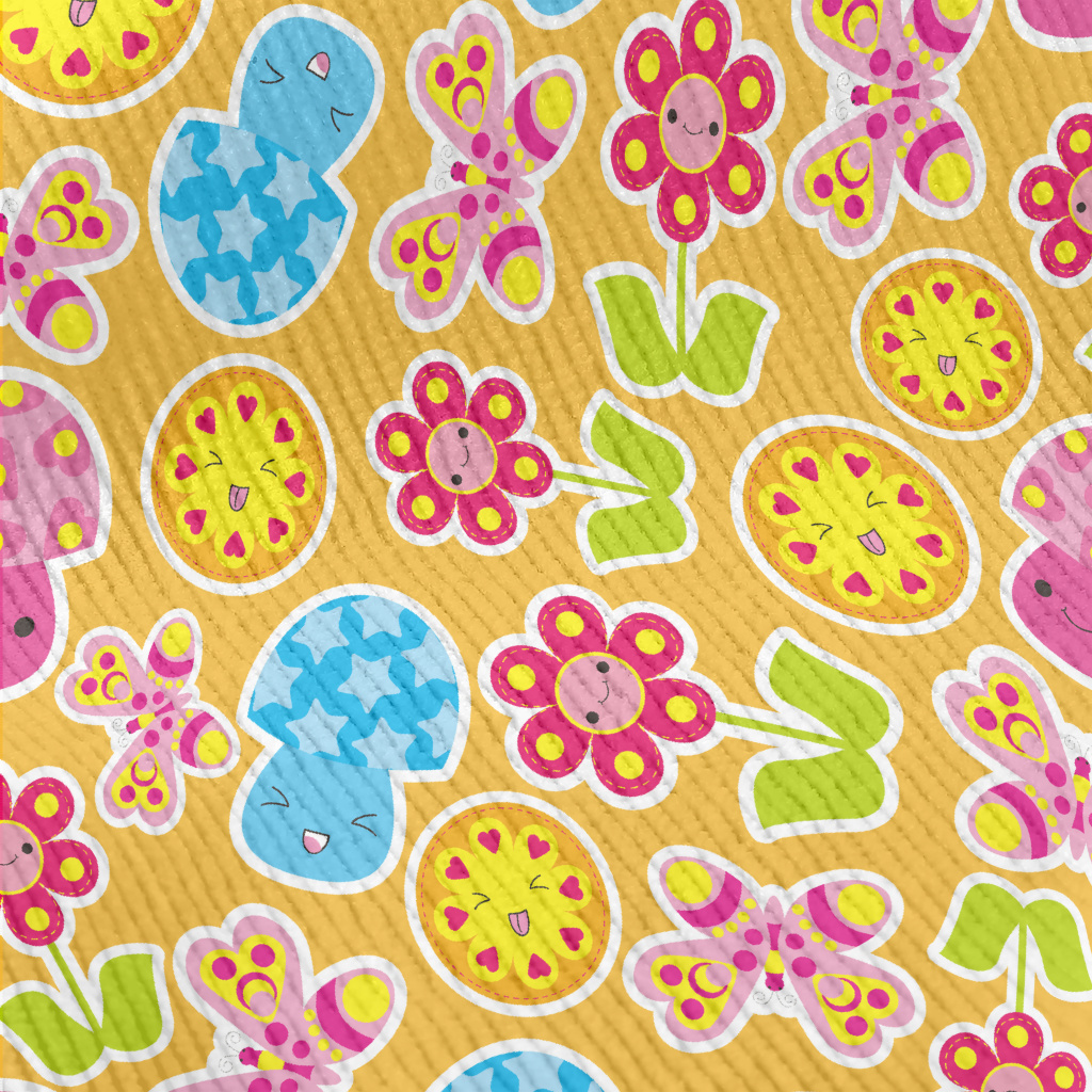 色彩繽紛花朵蘑菇蝴蝶燈芯絨(幅寬150公分)