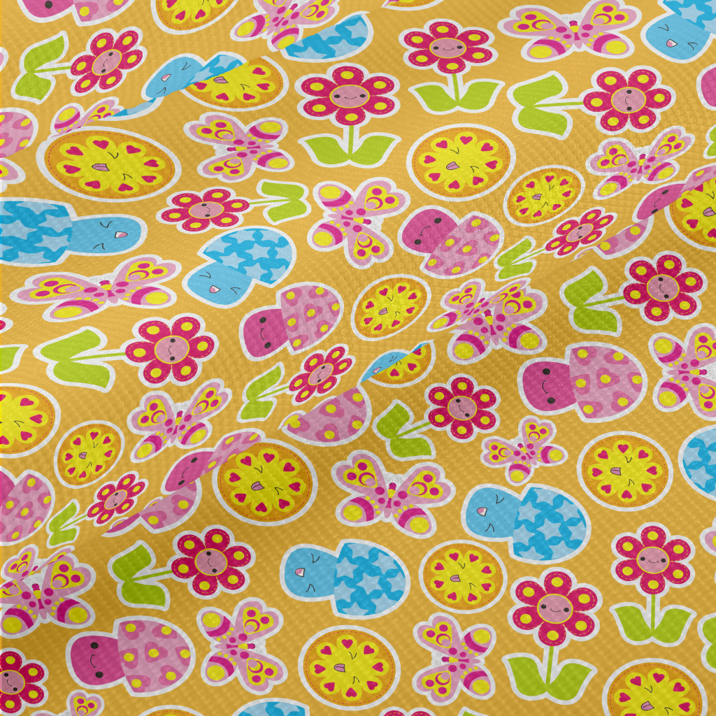 色彩繽紛花朵蘑菇蝴蝶雙斜布(幅寬150公分)