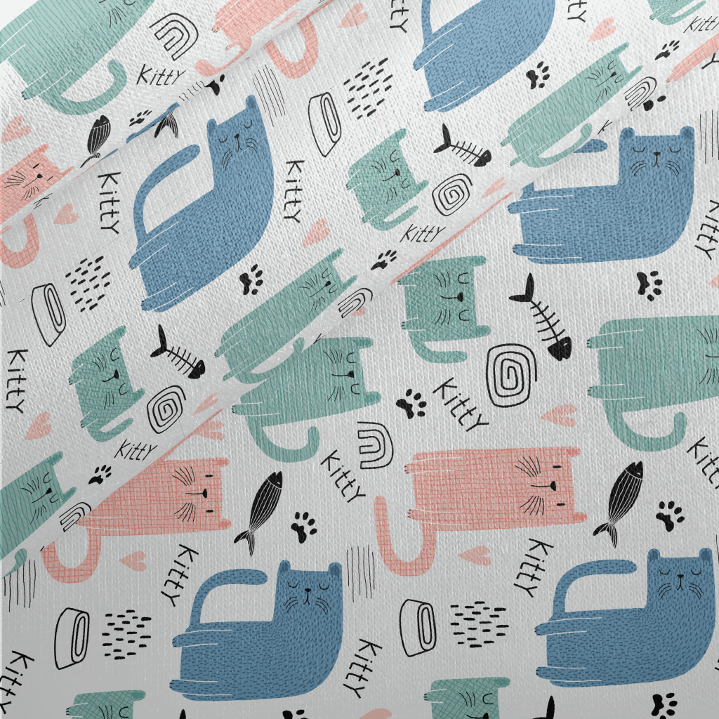 彩色呆傻貓咪刷毛布(幅寬150公分)
