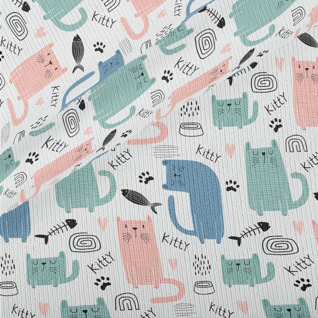 彩色呆傻貓咪仿毛衣布(幅寬150公分)