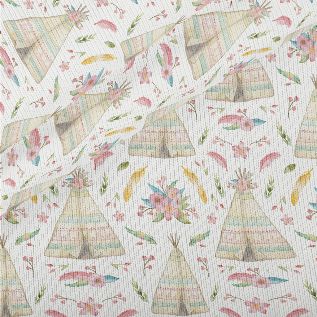 水彩畫印地安帳篷仿毛衣布(幅寬150公分)
