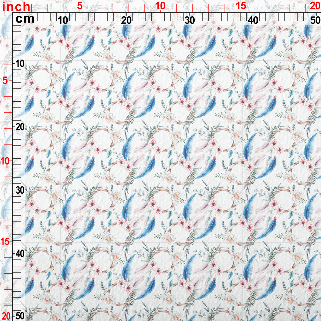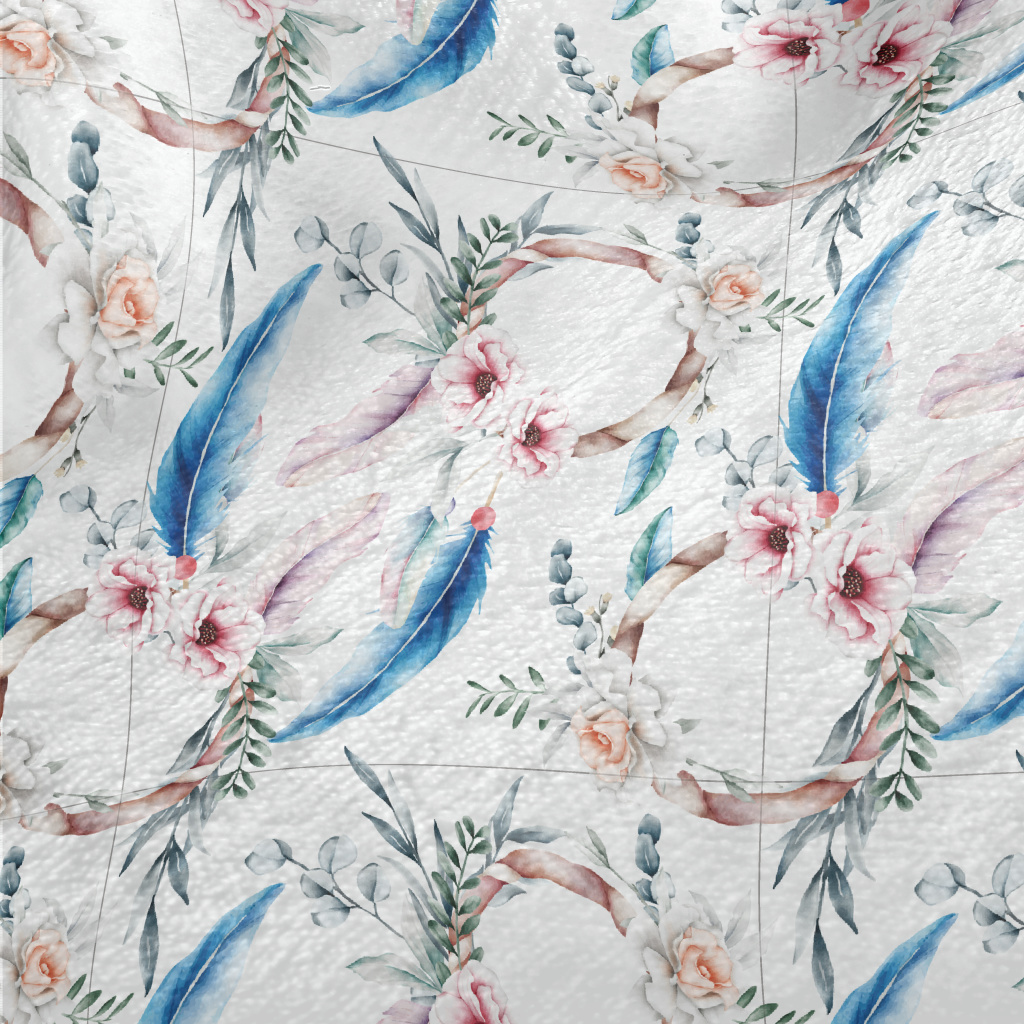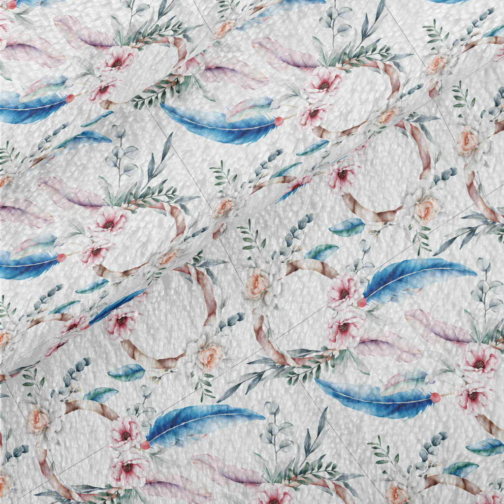 手繪艷麗的花卉羽毛法蘭絨(幅寬150公分)