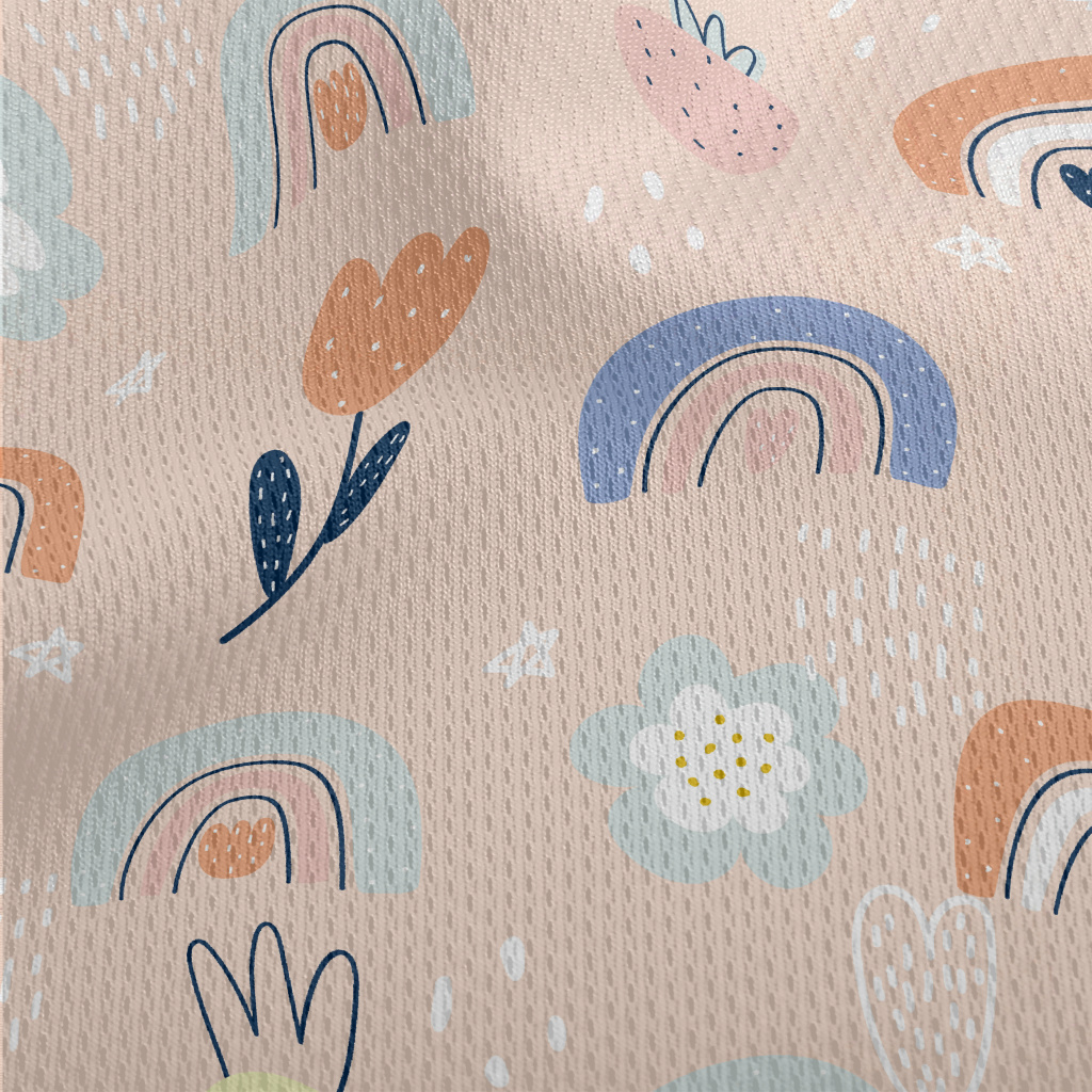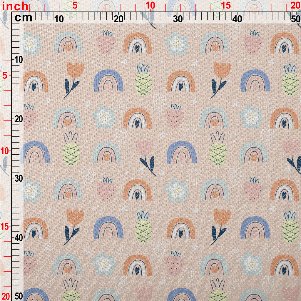 點綴彩色花朵彩虹草莓鳥眼布(幅寬160公分)