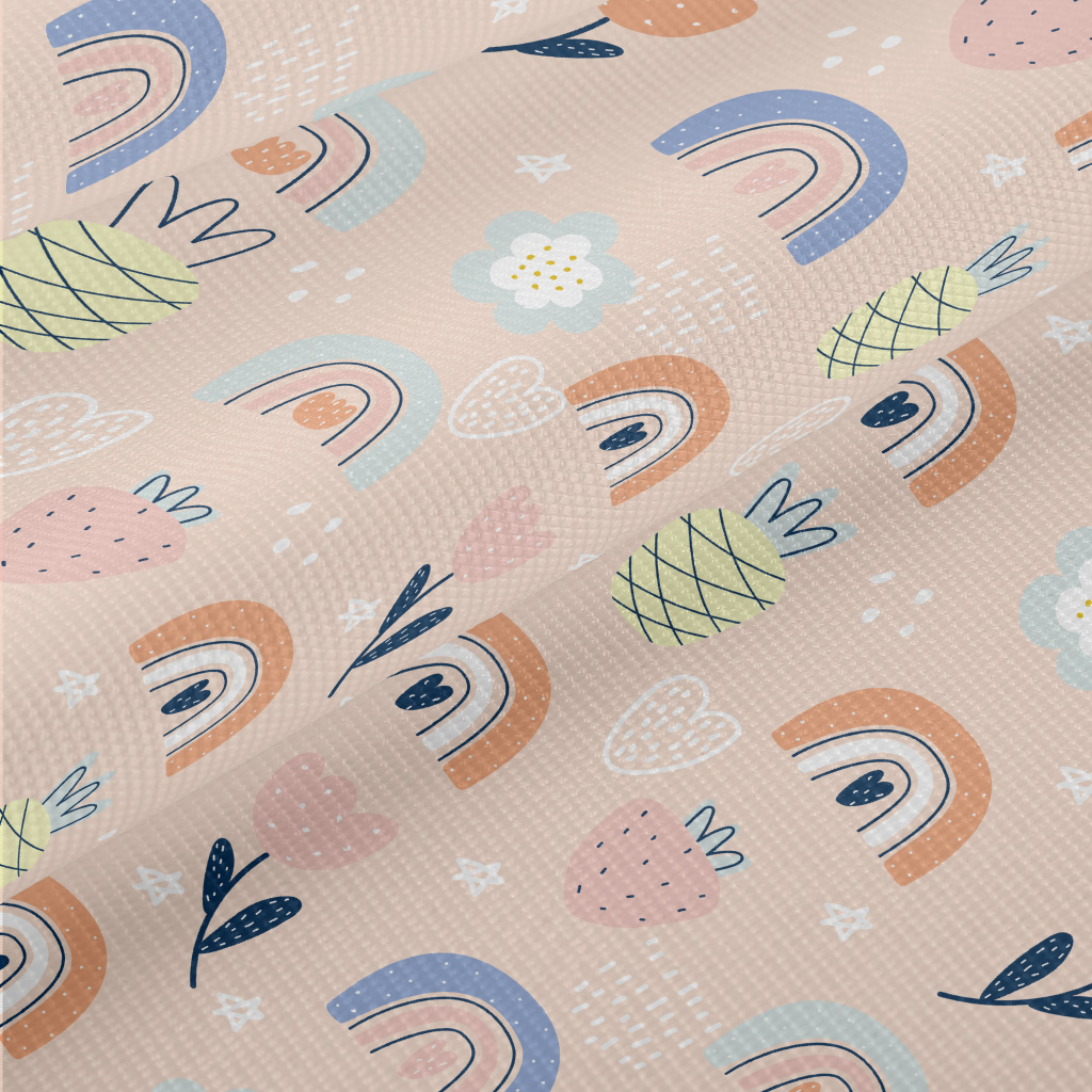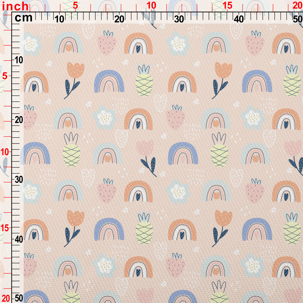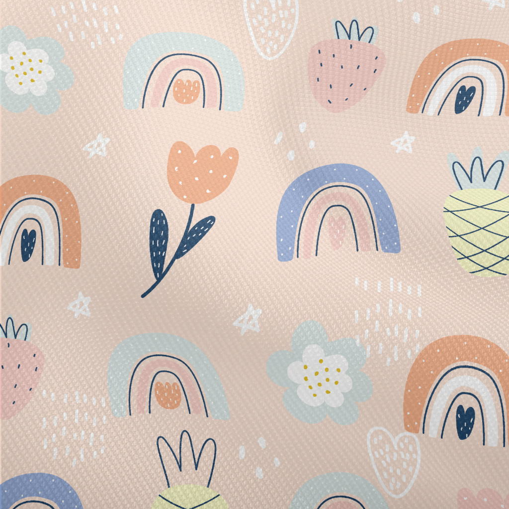 點綴彩色花朵彩虹草莓雙斜布(幅寬150公分)