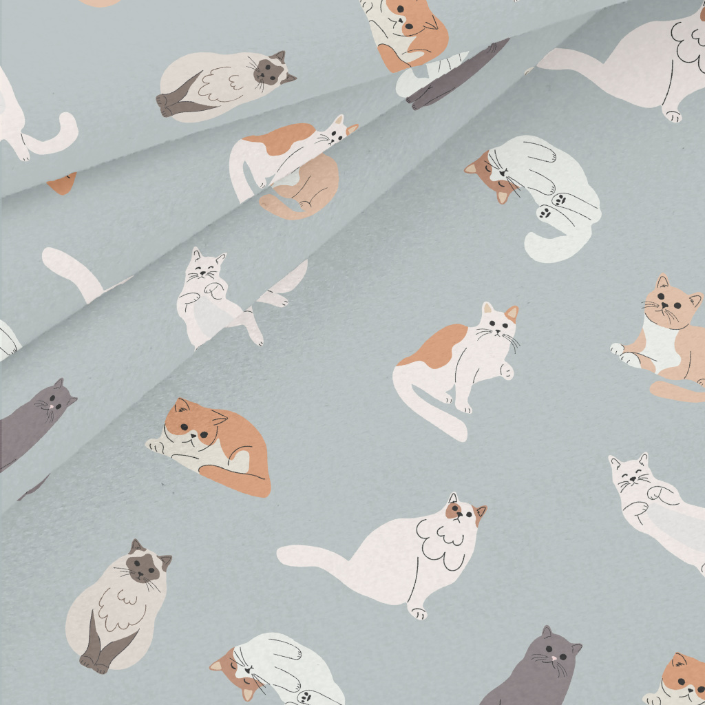 卡通風格貓咪水晶絨(幅寬160公分)