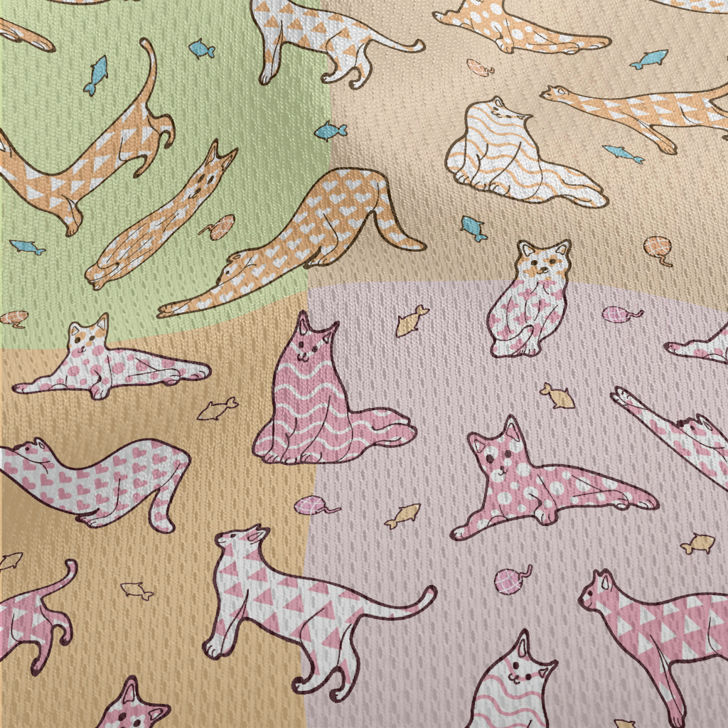 各種彩色花紋的貓咪鳥眼布(幅寬160公分)
