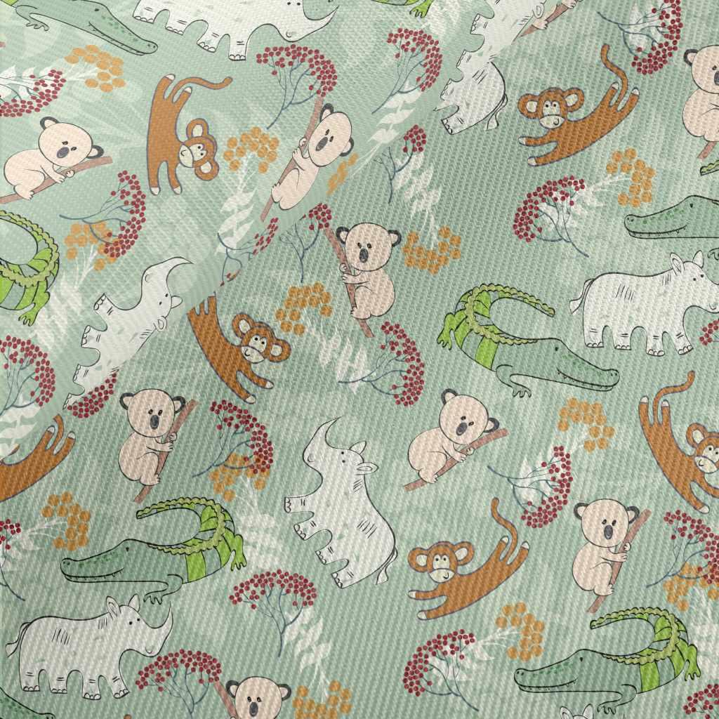 手繪可愛叢林動物斜紋布(幅寬150公分)