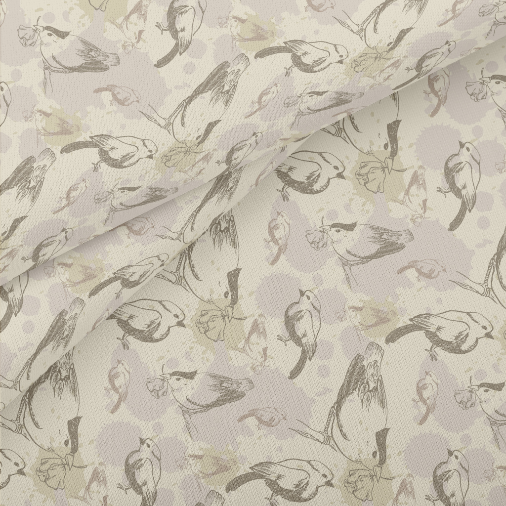 手繪精細小鳥們羅馬布(幅寬160公分)