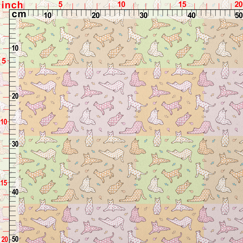 各種彩色花紋的貓咪竹節麻(幅寬150公分)