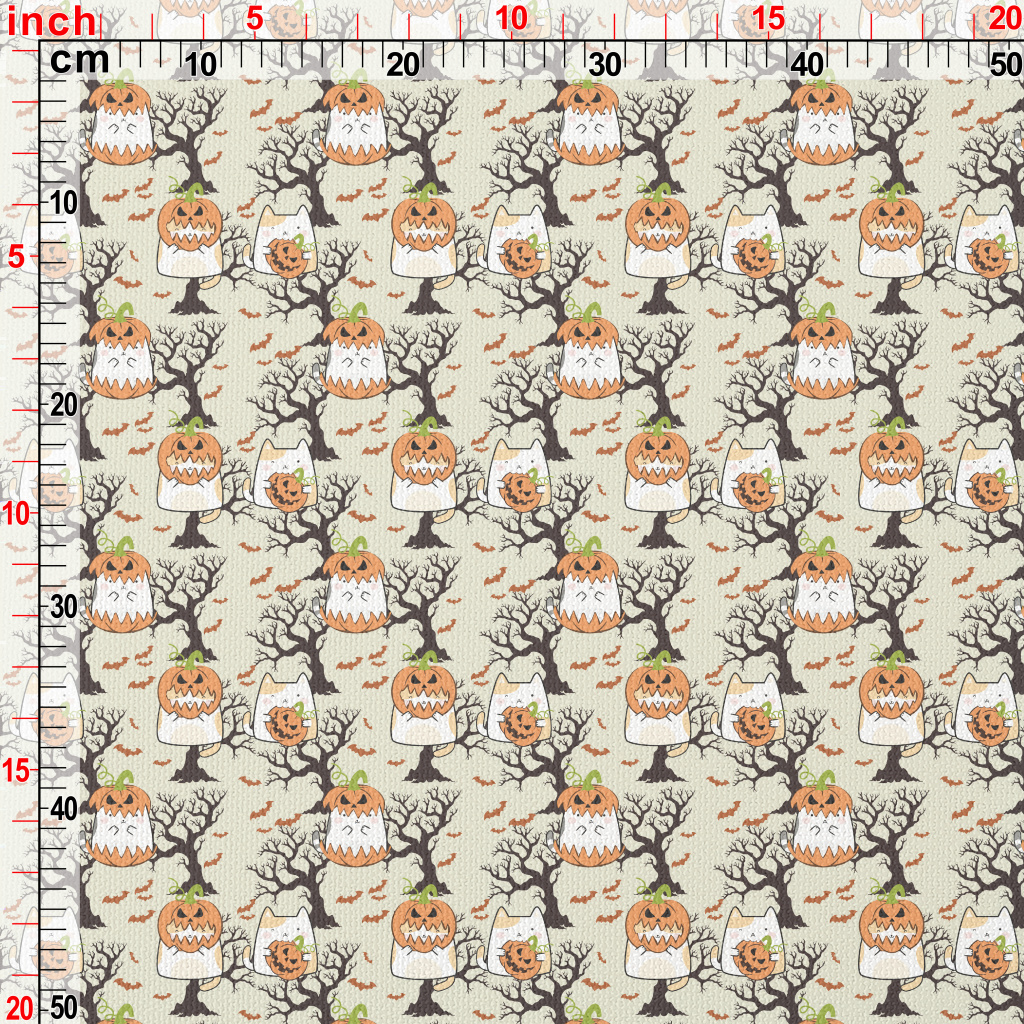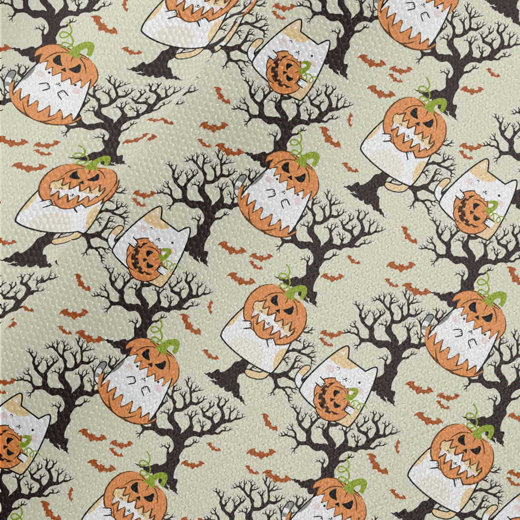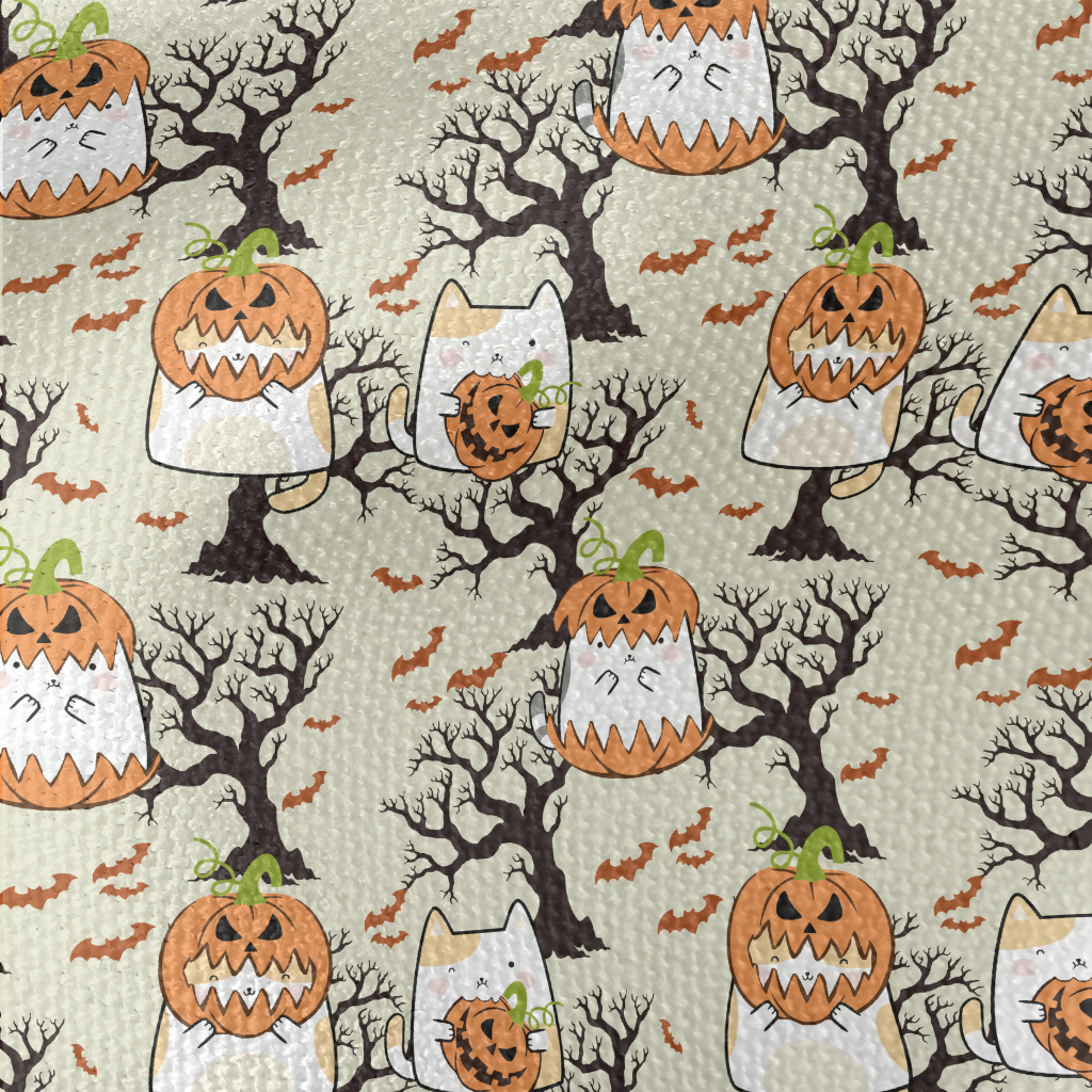 南瓜貓咪和樹木蝙蝠帆布(幅寬150公分)