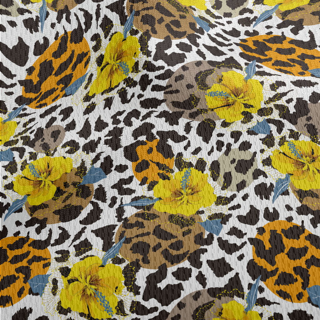 色塊裡有黃色芙蓉花鳥眼布(幅寬160公分)