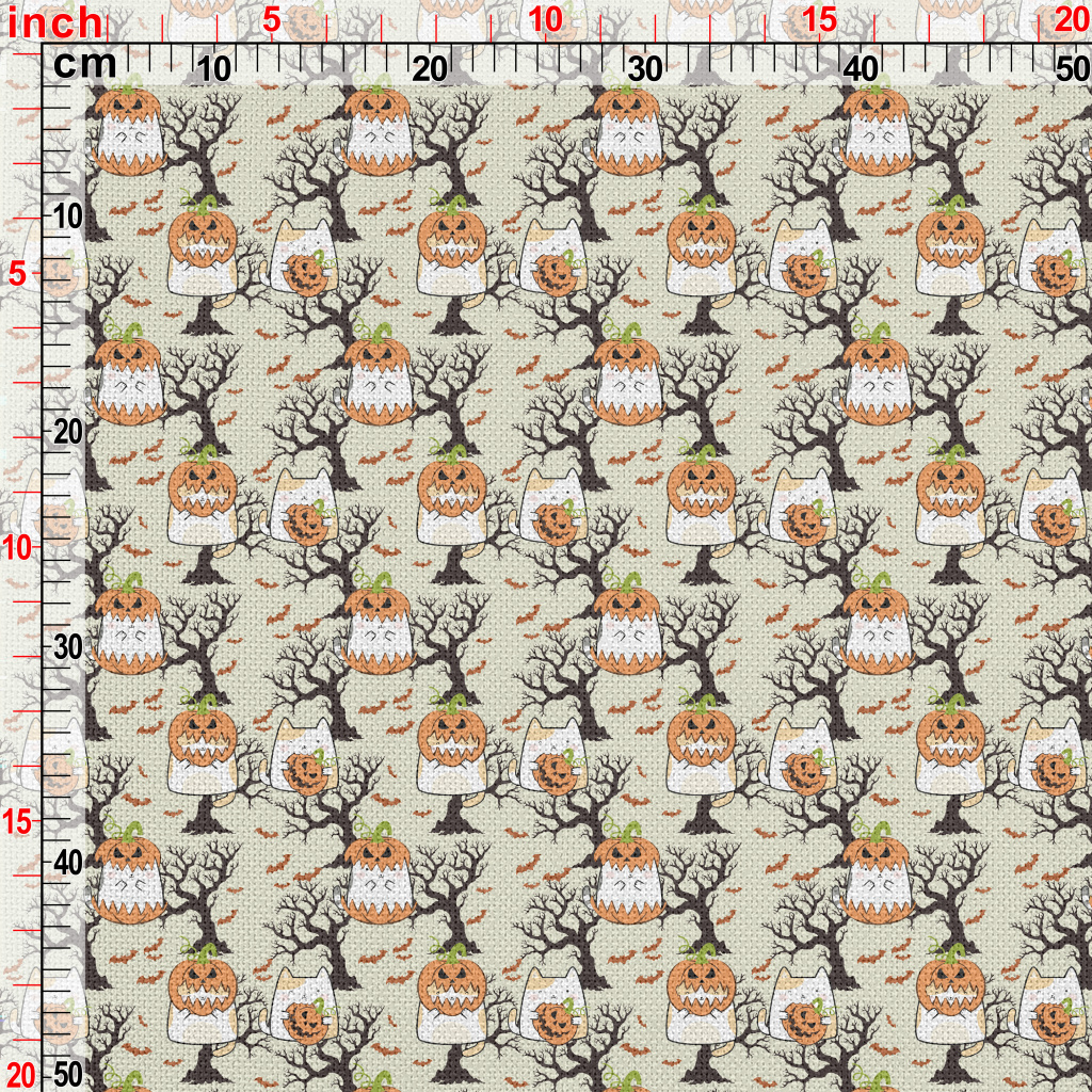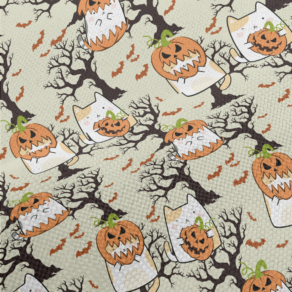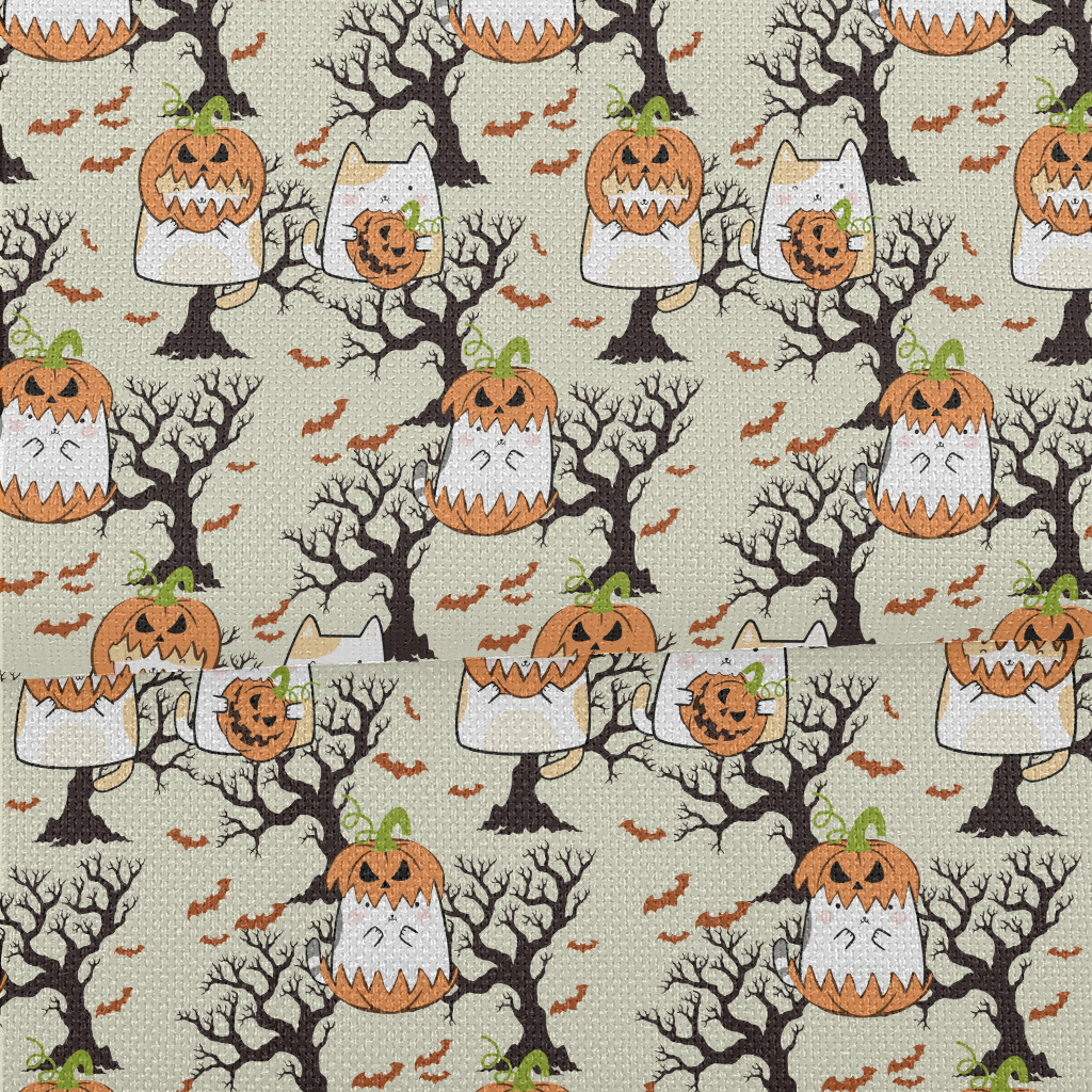 南瓜貓咪和樹木蝙蝠麻布(幅寬150公分)