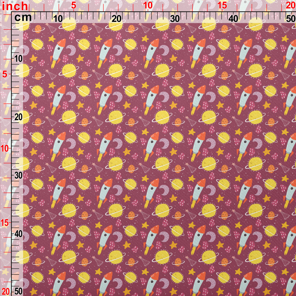 塗鴉火箭和星球宇宙斜紋布(幅寬150公分)
