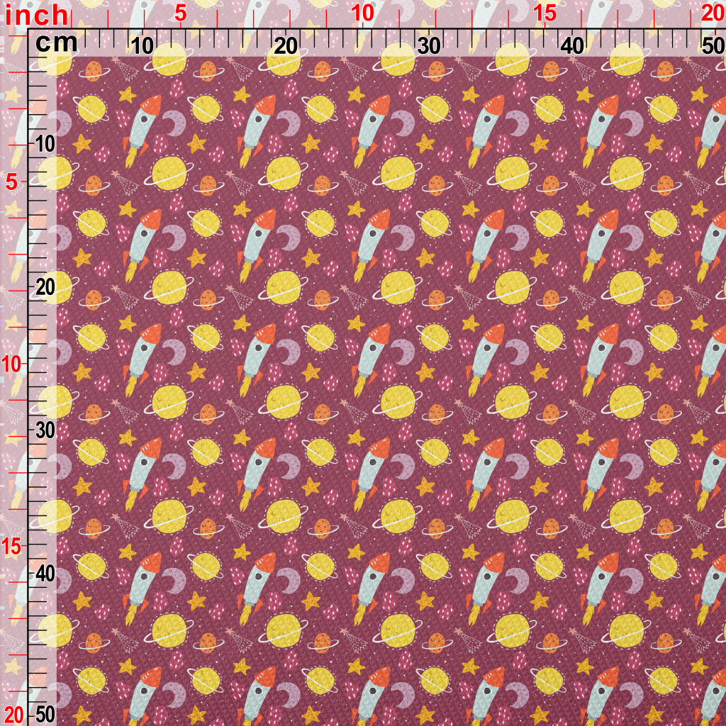 塗鴉火箭和星球宇宙雙斜布(幅寬150公分)