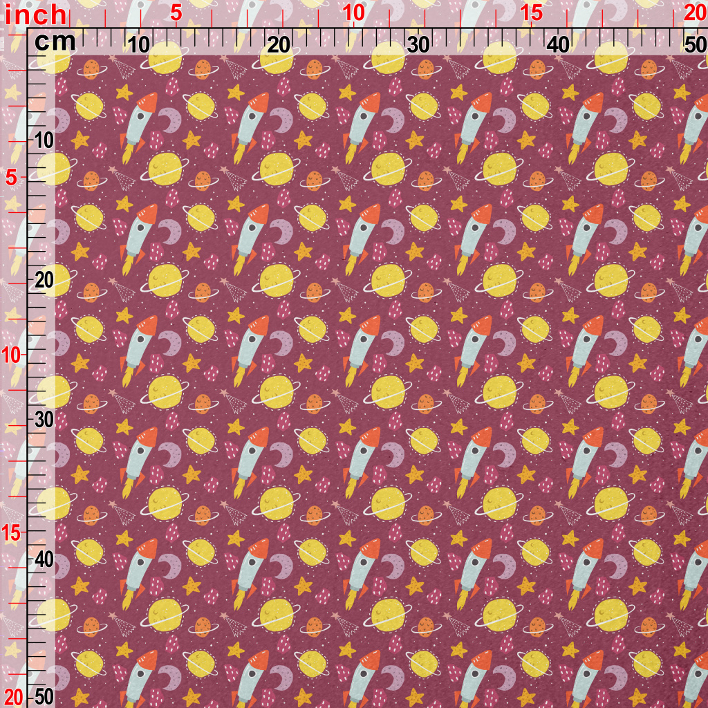 塗鴉火箭和星球宇宙水晶絨(幅寬160公分)