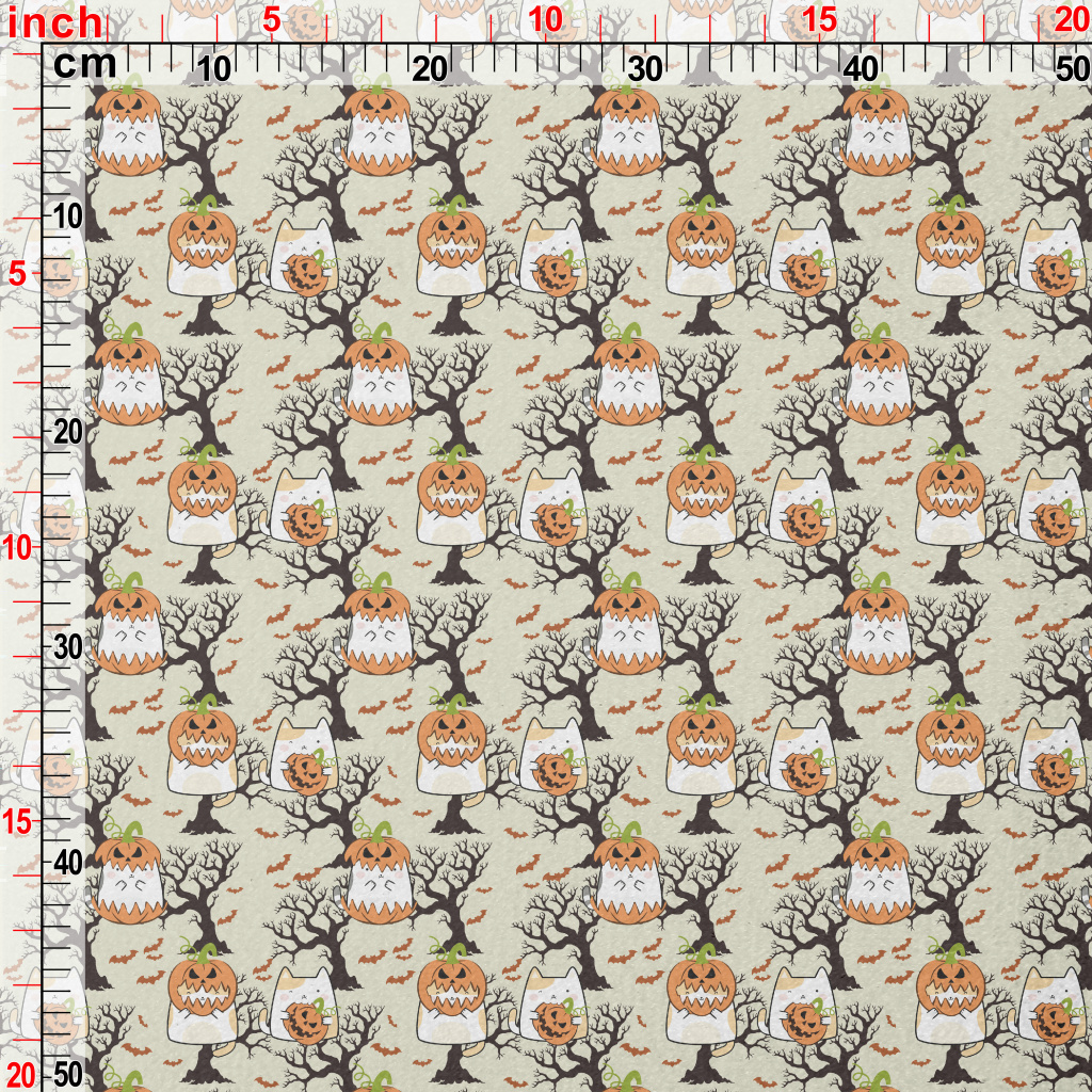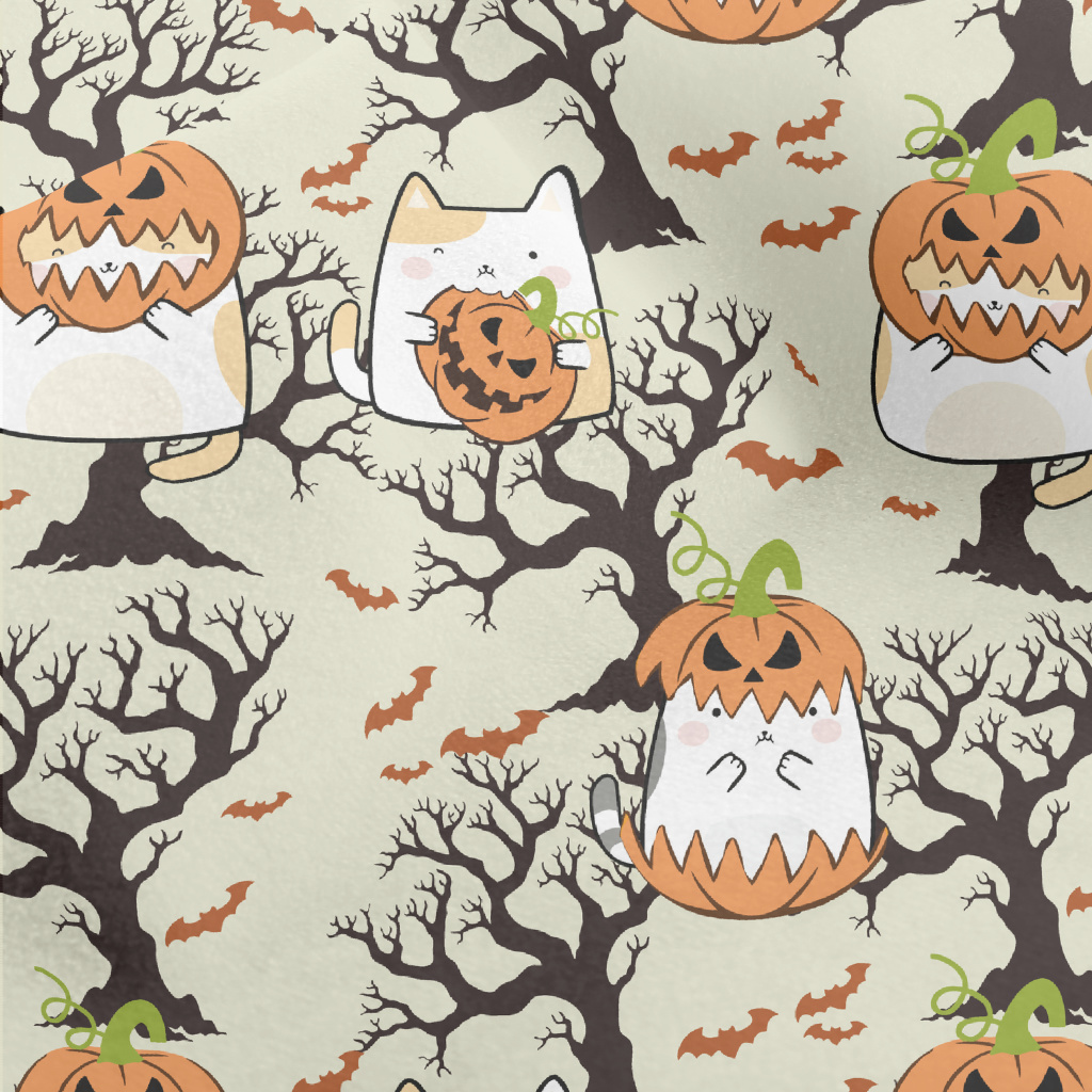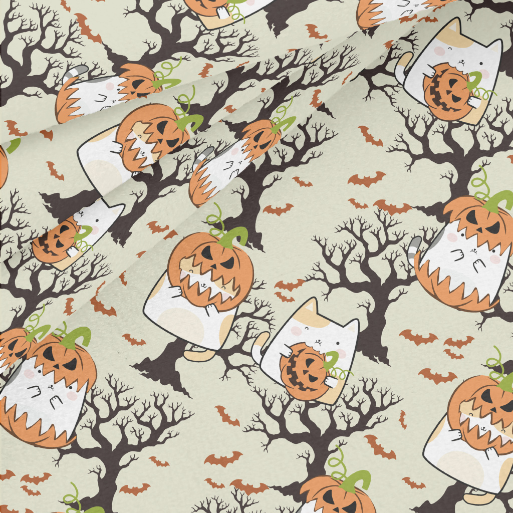 南瓜貓咪和樹木蝙蝠水晶絨(幅寬160公分)
