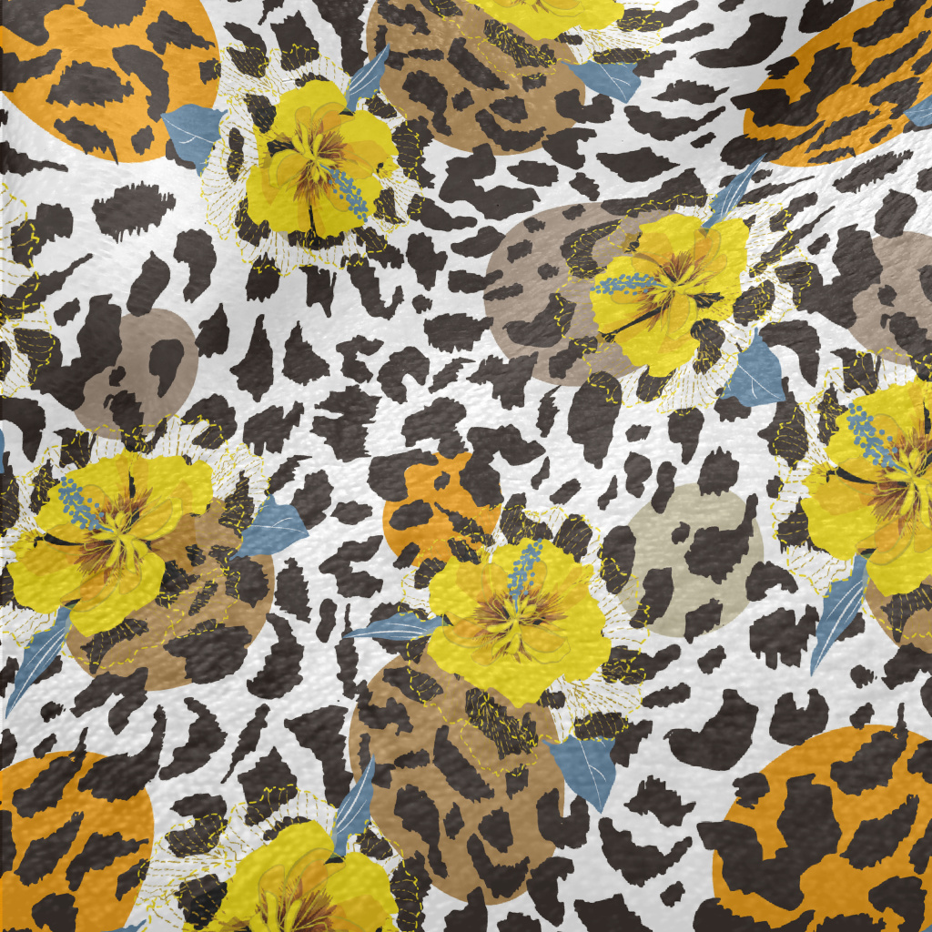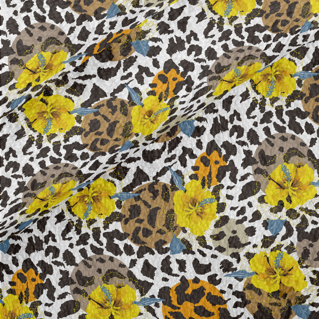 色塊裡有黃色芙蓉花法蘭絨(幅寬150公分)