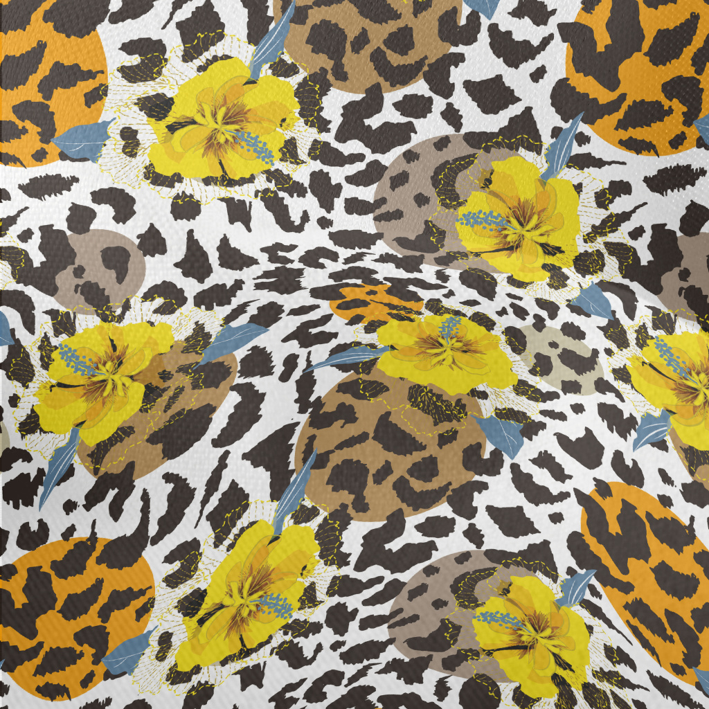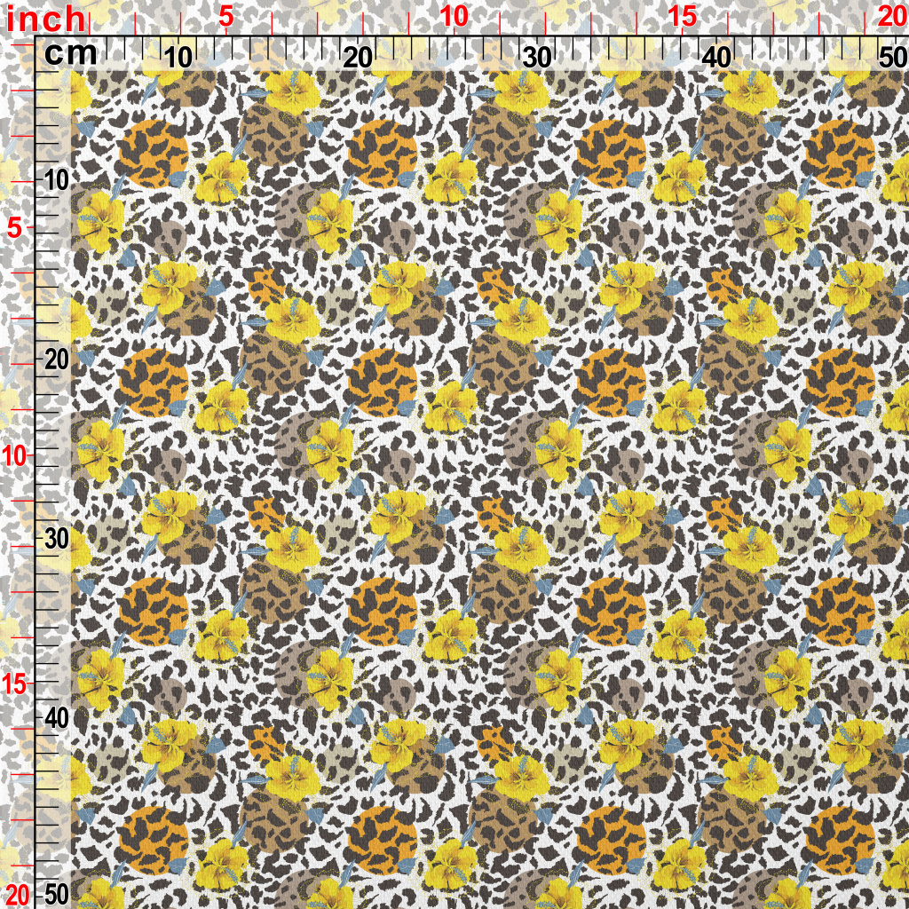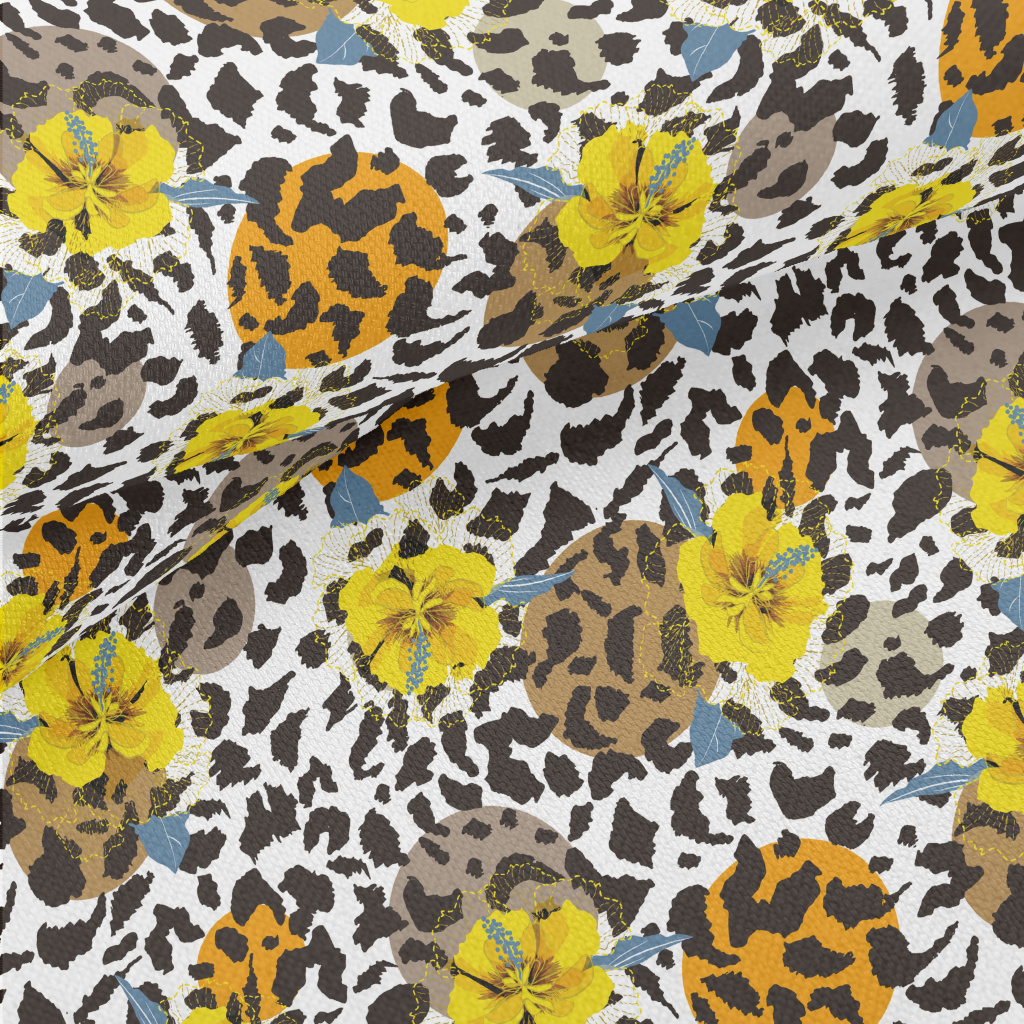 色塊裡有黃色芙蓉花竹節麻(幅寬150公分)