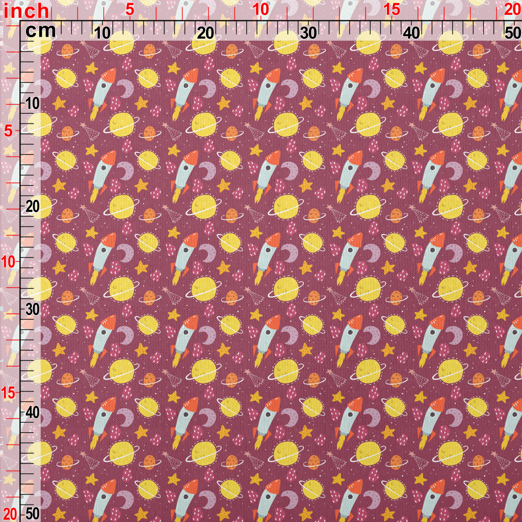 塗鴉火箭和星球宇宙仿棉布(幅寬150公分)