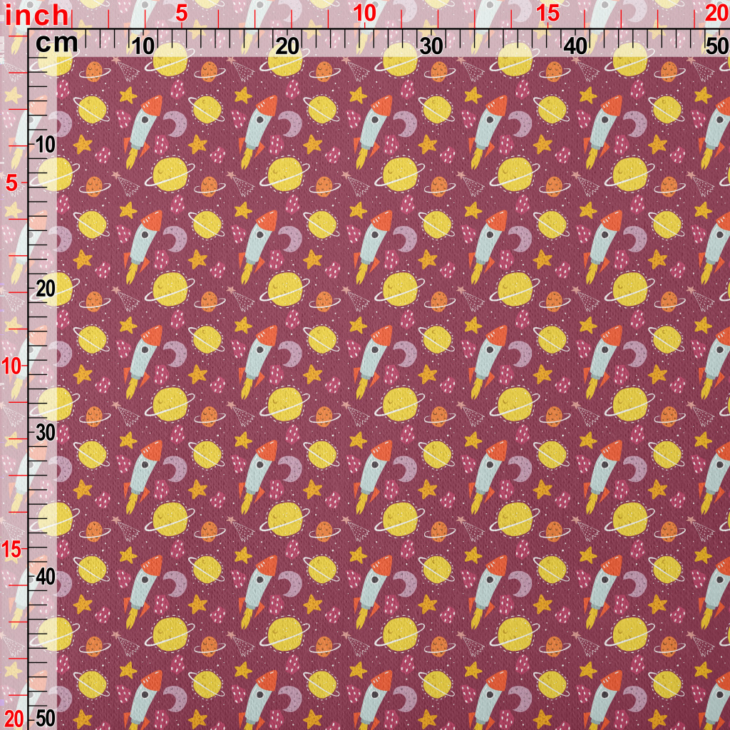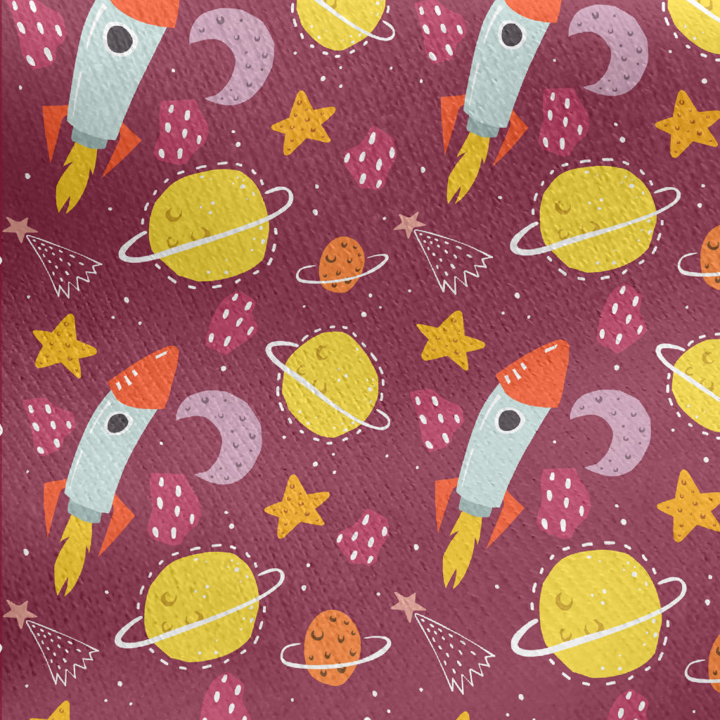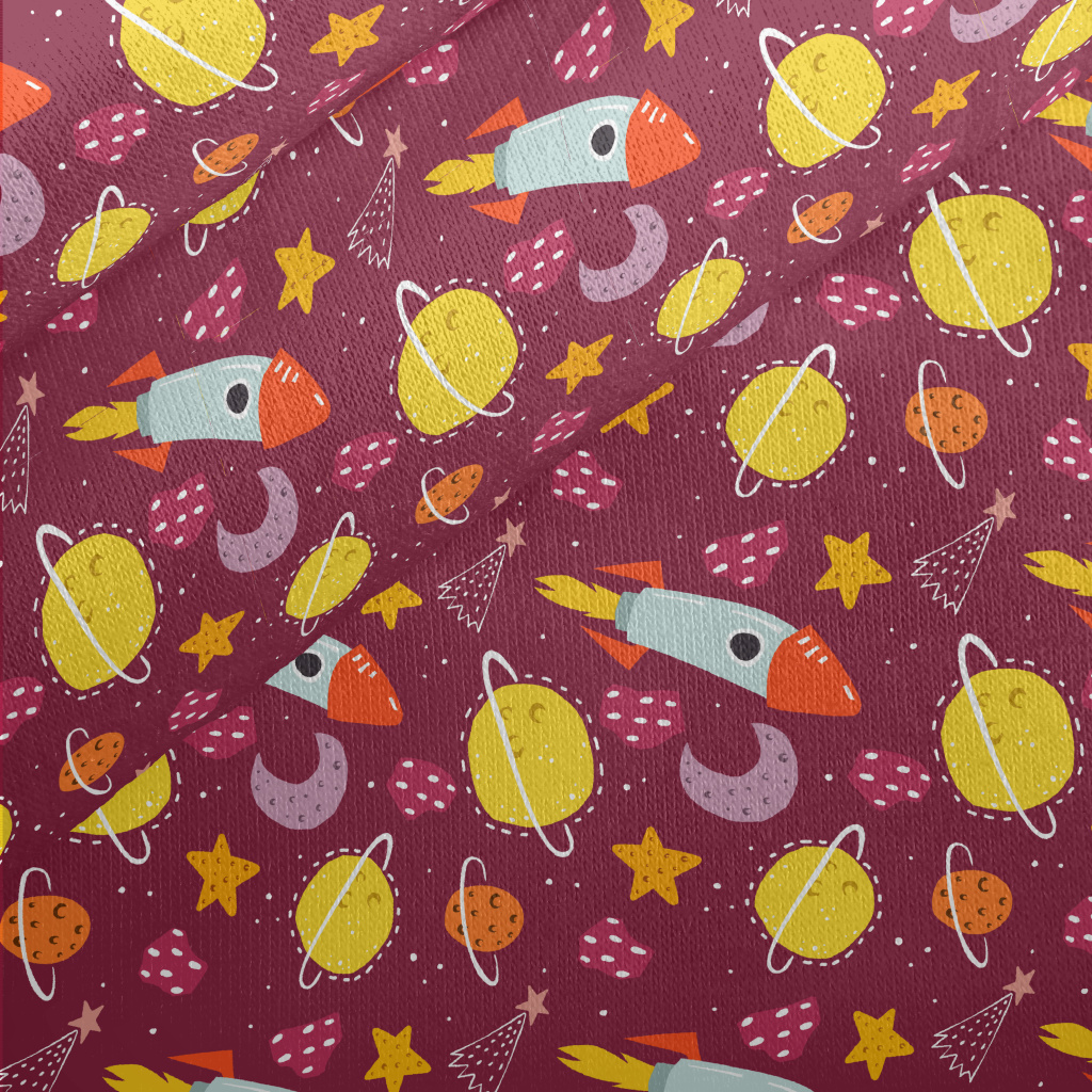 塗鴉火箭和星球宇宙刷毛布(幅寬150公分)
