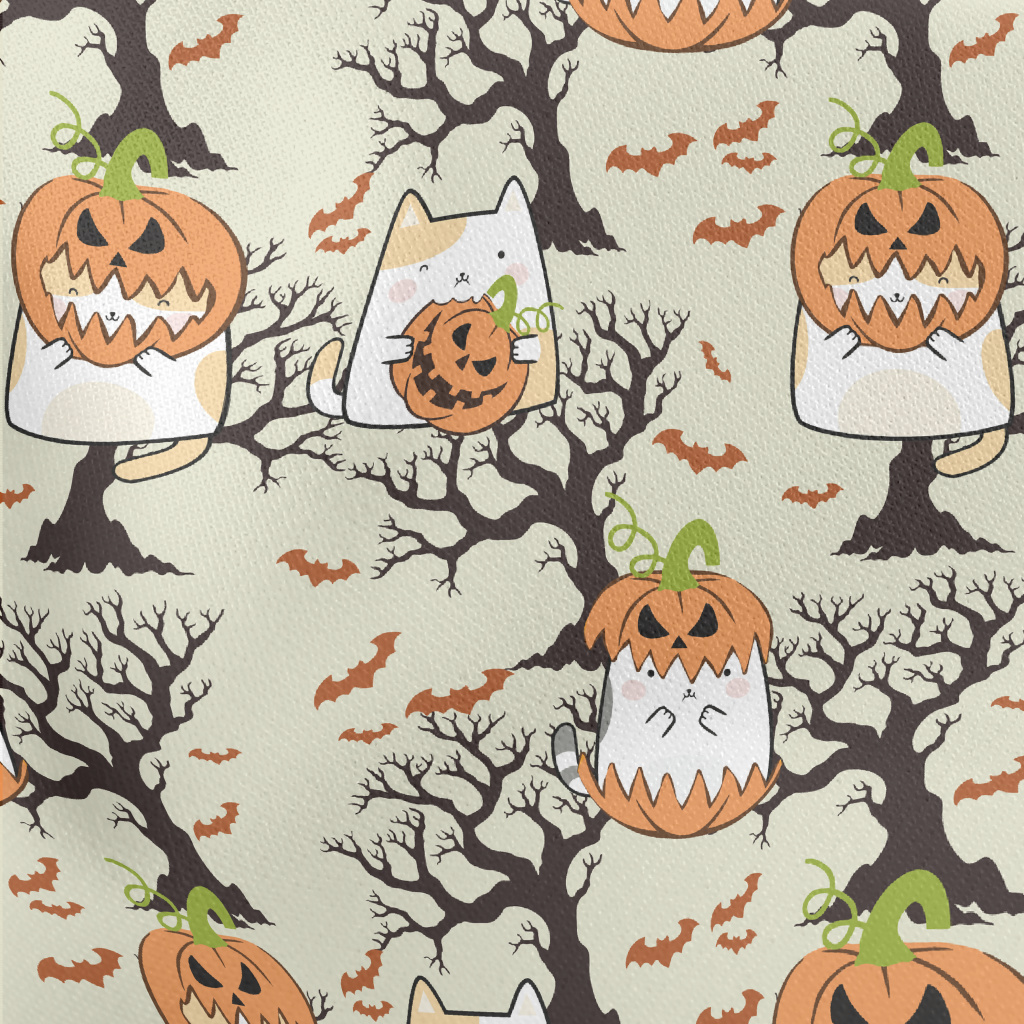 南瓜貓咪和樹木蝙蝠薄棉布(幅寬150公分)