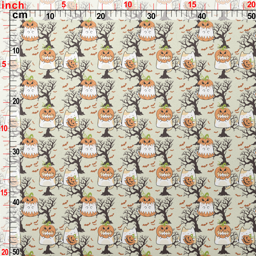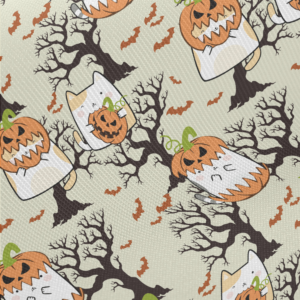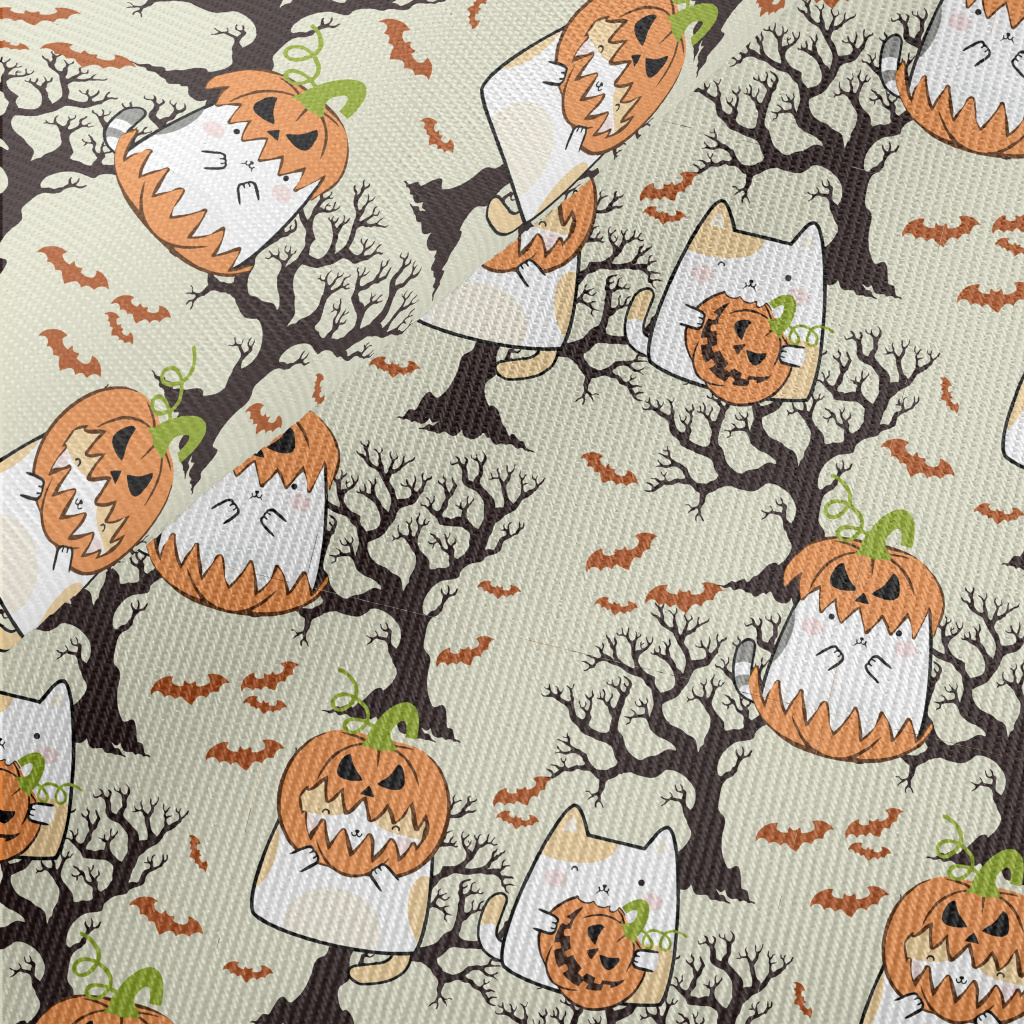 南瓜貓咪和樹木蝙蝠厚棉布(幅寬150公分)
