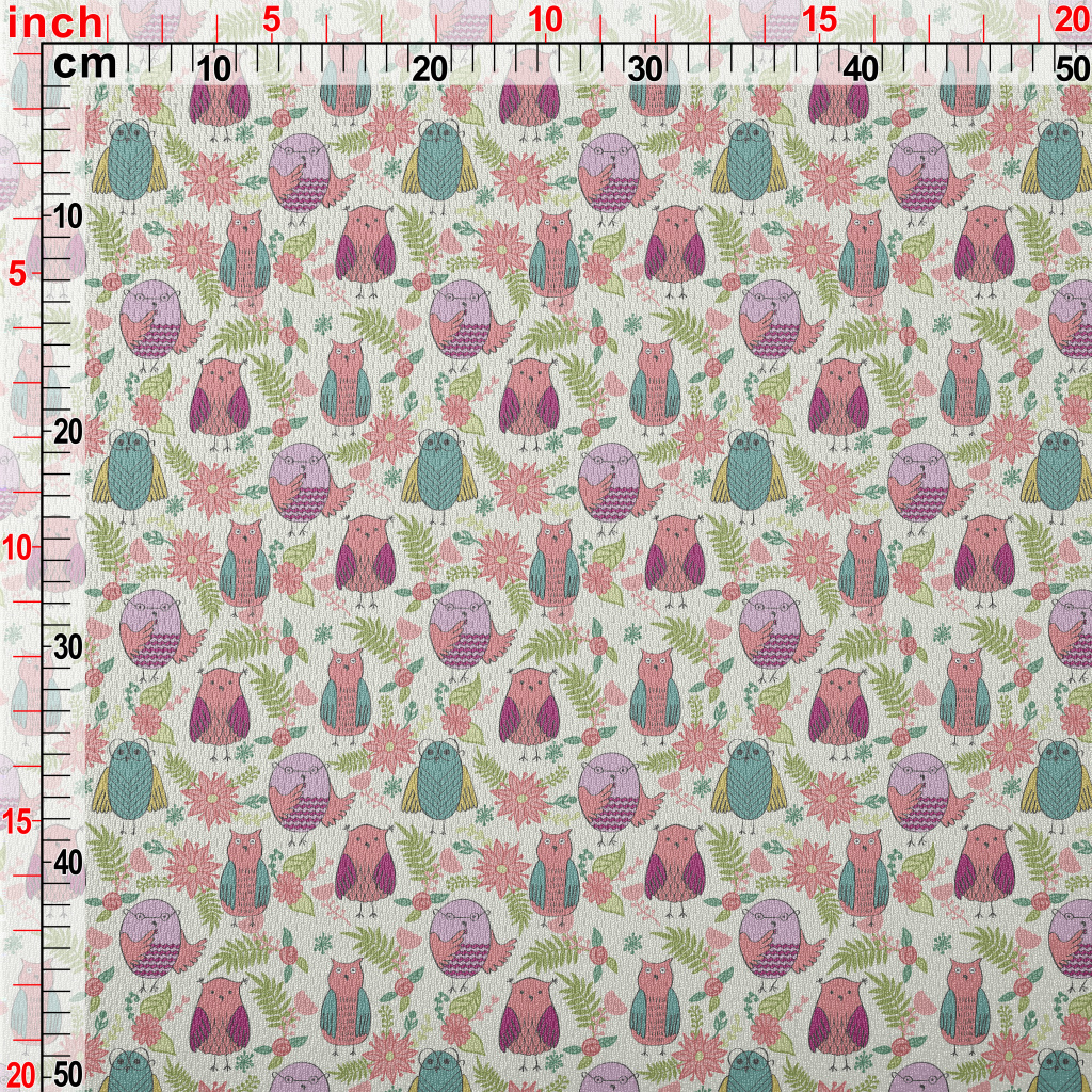 兒童可愛貓頭鷹和花朵鳥眼布(幅寬160公分)