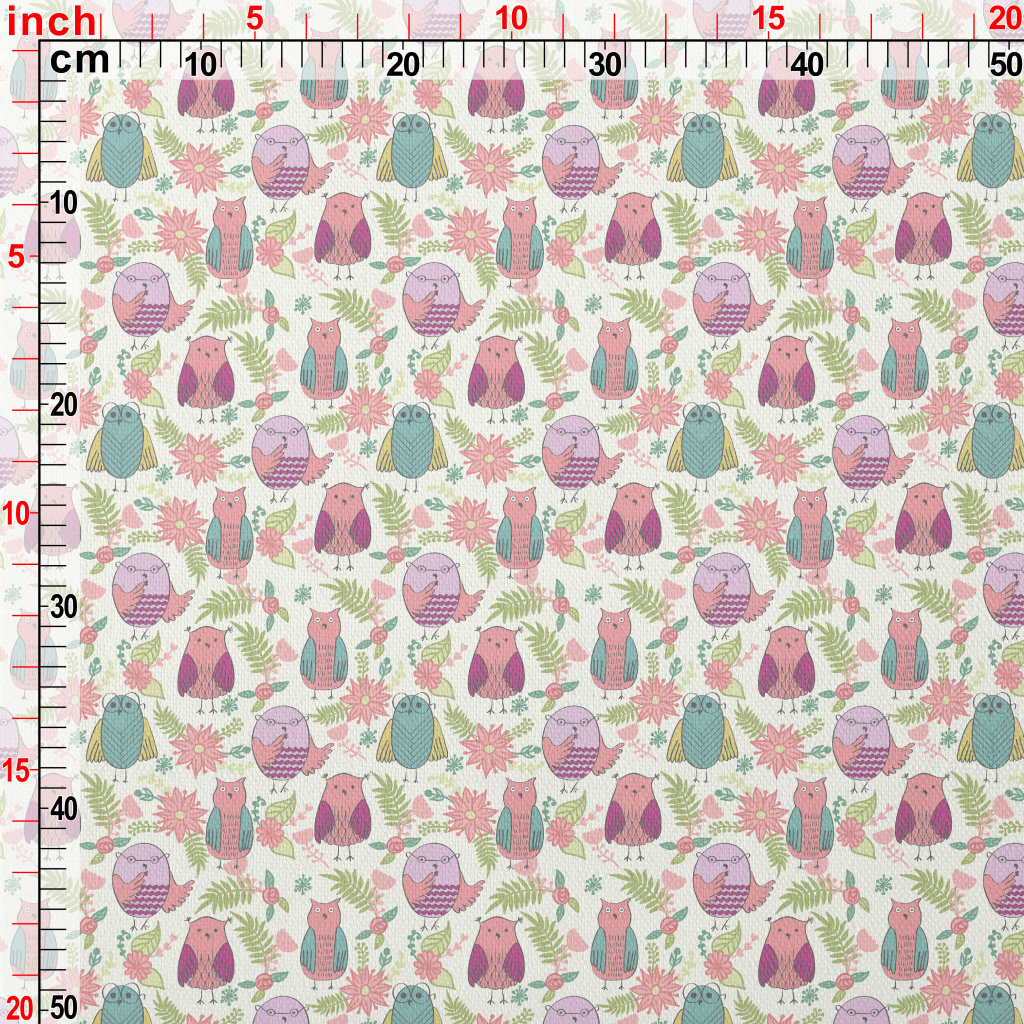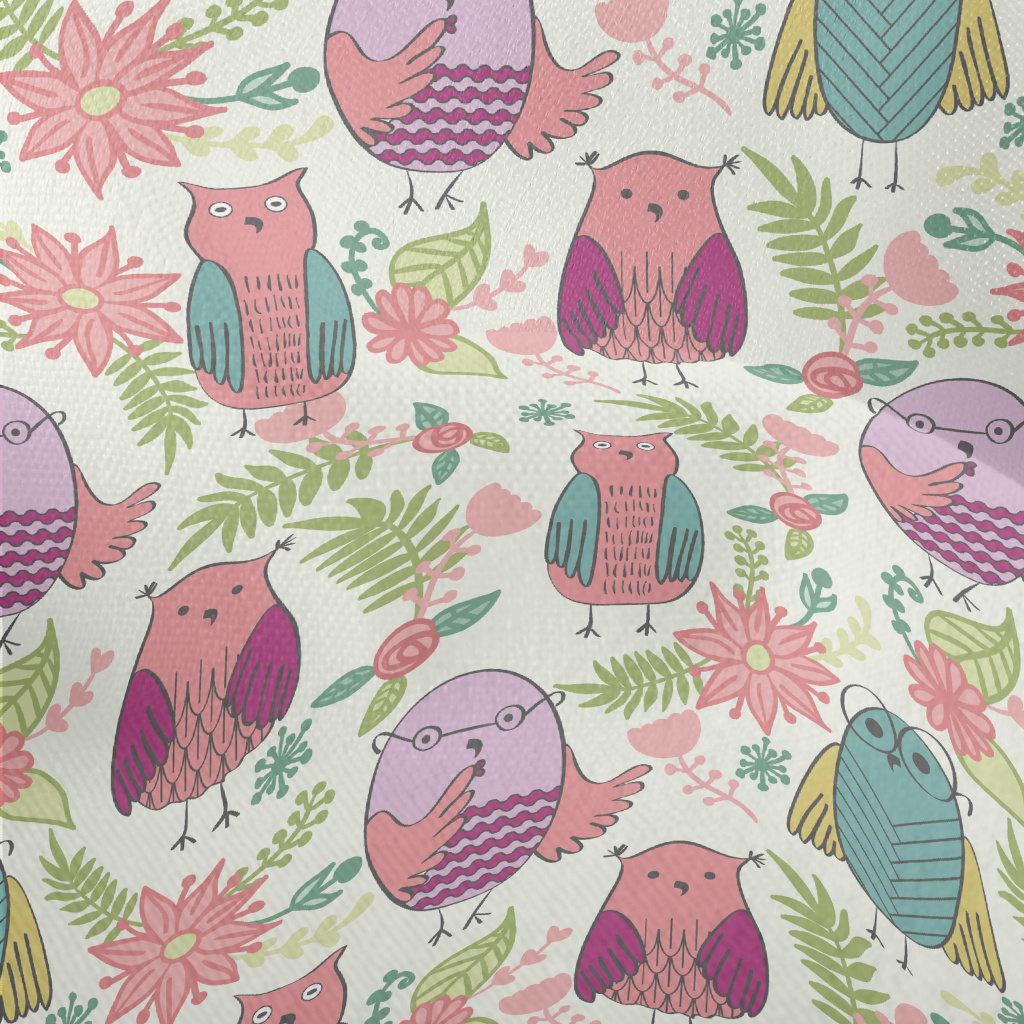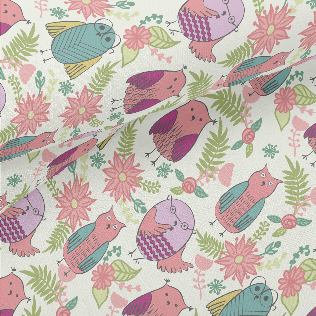 兒童可愛貓頭鷹和花朵竹節麻(幅寬150公分)